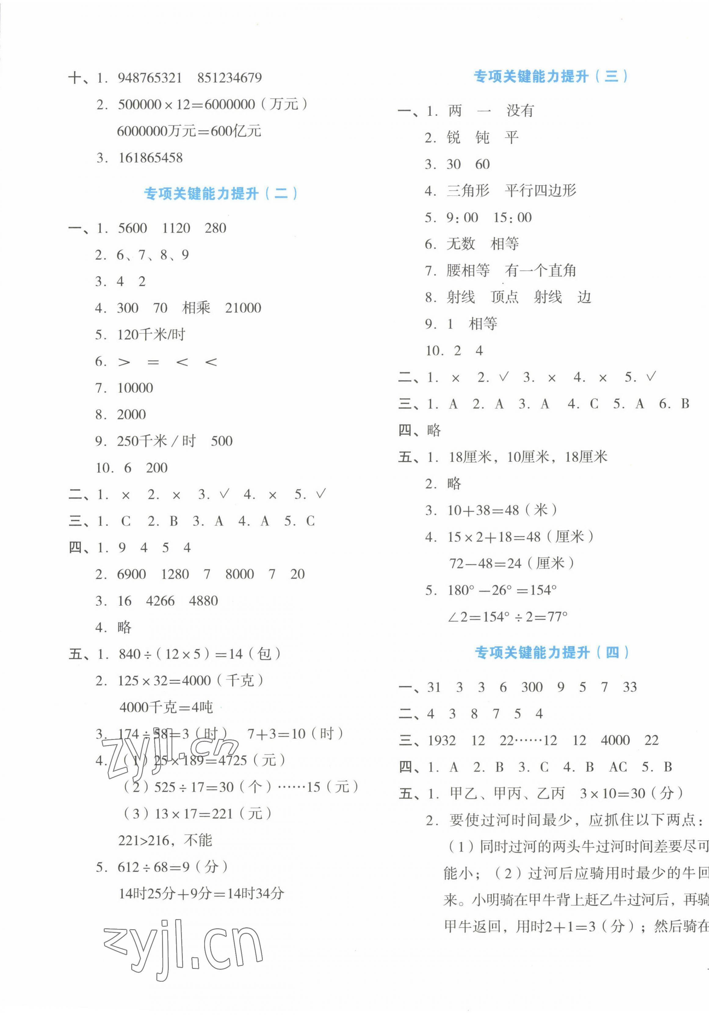 2022年学科素养与能力提升四年级数学上册人教版