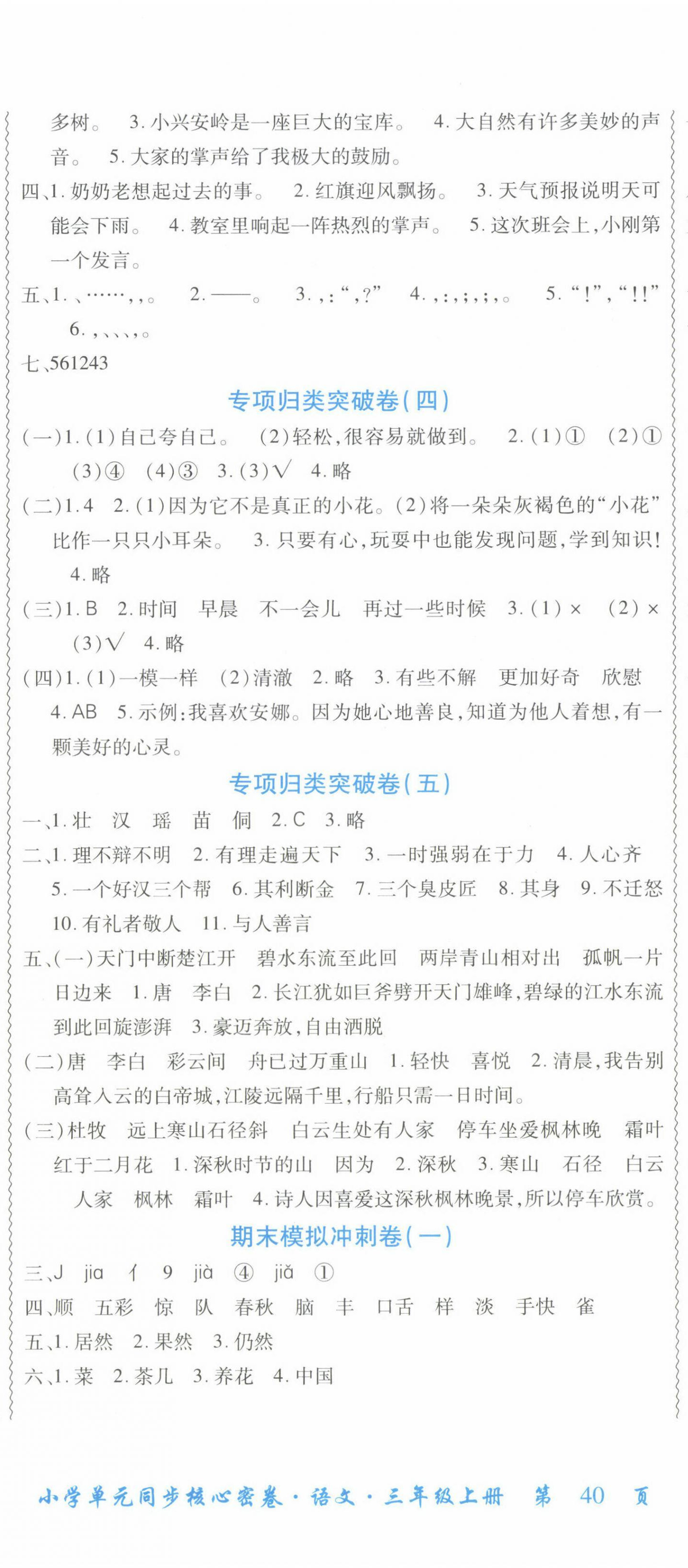 注:目前有些书本章节名称可能整理的还不是很完善,但都是按照顺序排列的,请同学们按照顺序仔细查找。练习册 2022年小学单元同步核心密卷三年级语文上册人教版 答案主要是用来给同学们做完题方便对答案用的,请勿直接抄袭。