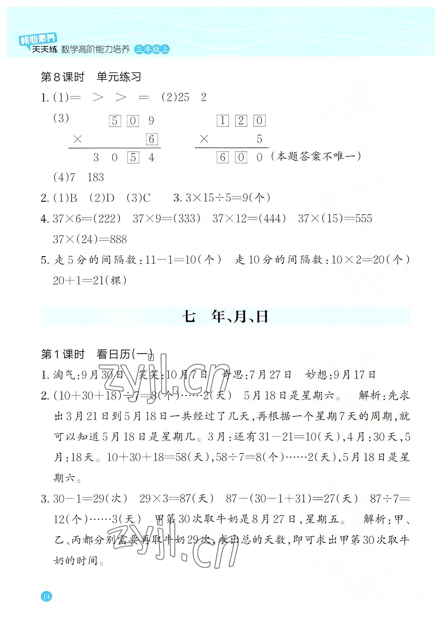 2022年核心素养天天练高阶能力培养三年级数学上册北师大版