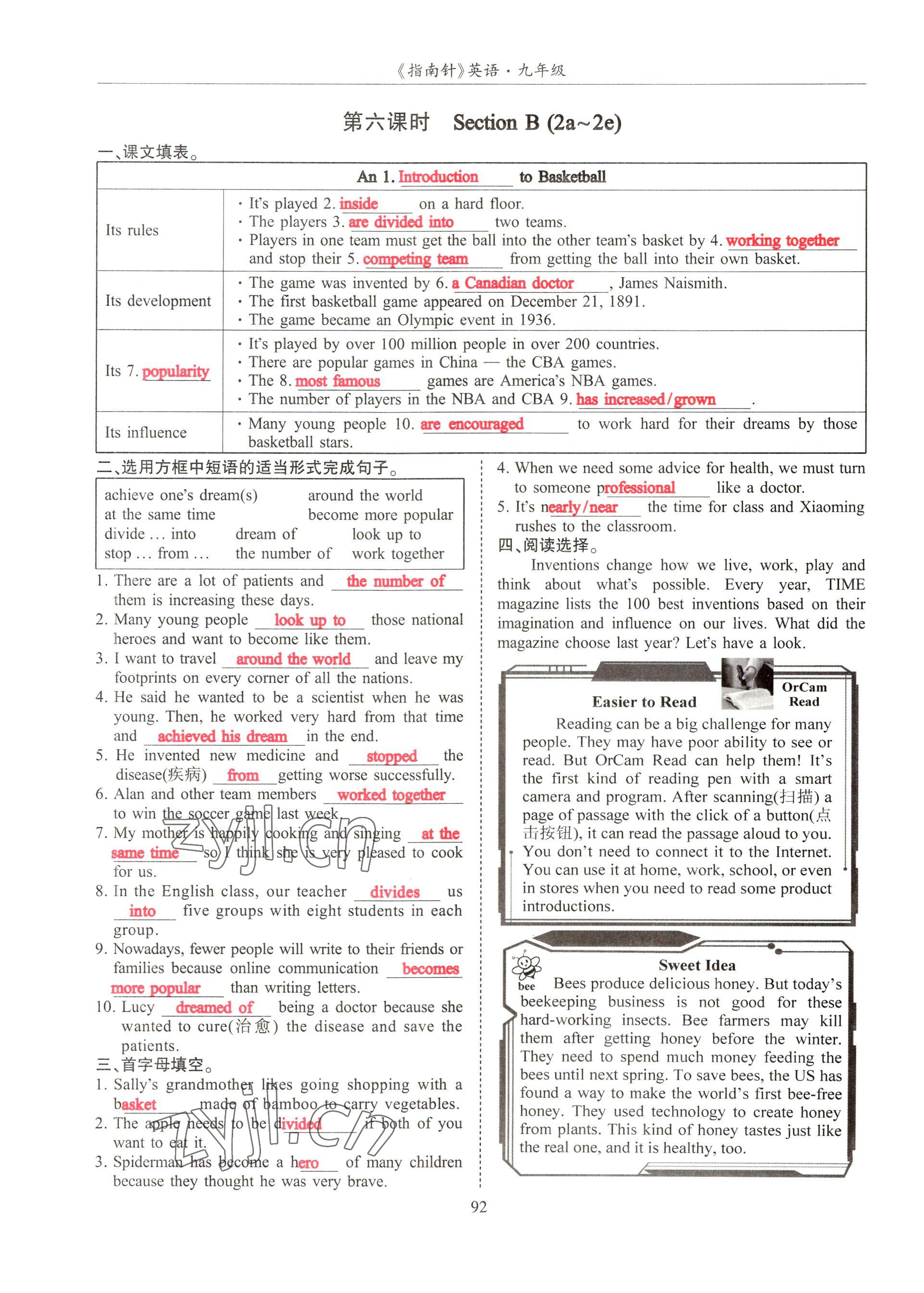 注:目前有些书本章节名称可能整理的还不是很完善,但都是按照顺序排列的,请同学们按照顺序仔细查找。练习册 2022年指南针高分必备九年级英语全一册人教版 答案主要是用来给同学们做完题方便对答案用的,请勿直接抄袭。