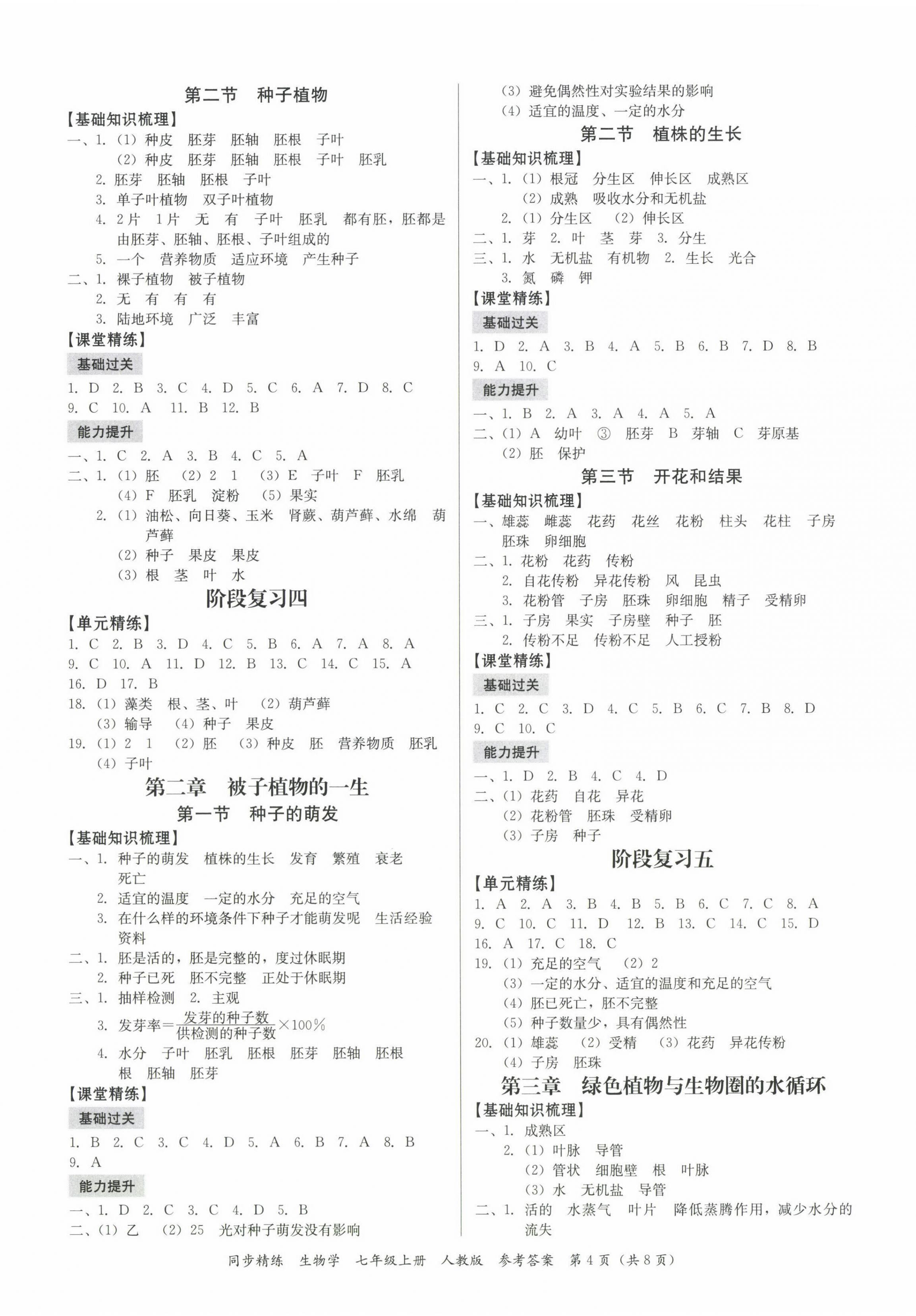 注:目前有些书本章节名称可能整理的还不是很完善,但都是按照顺序排列的,请同学们按照顺序仔细查找。练习册 2022年同步精练广东人民出版社七年级生物上册人教版广东专版 答案主要是用来给同学们做完题方便对答案用的,请勿直接抄袭。