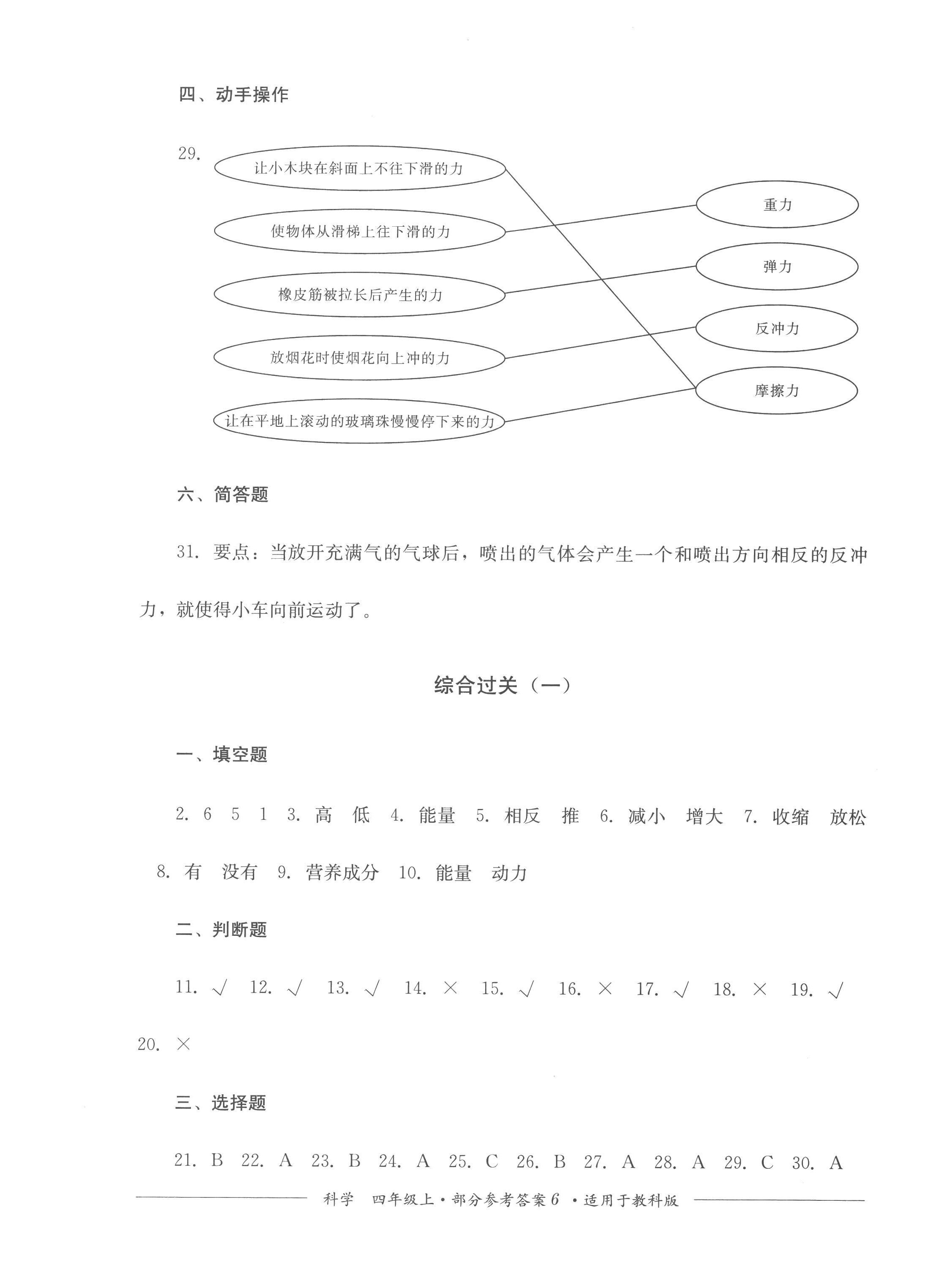 注:目前有些书本章节名称可能整理的还不是很完善,但都是按照顺序排列的,请同学们按照顺序仔细查找。练习册 2022年精练过关四川教育出版社四年级科学上册教科版 答案主要是用来给同学们做完题方便对答案用的,请勿直接抄袭。