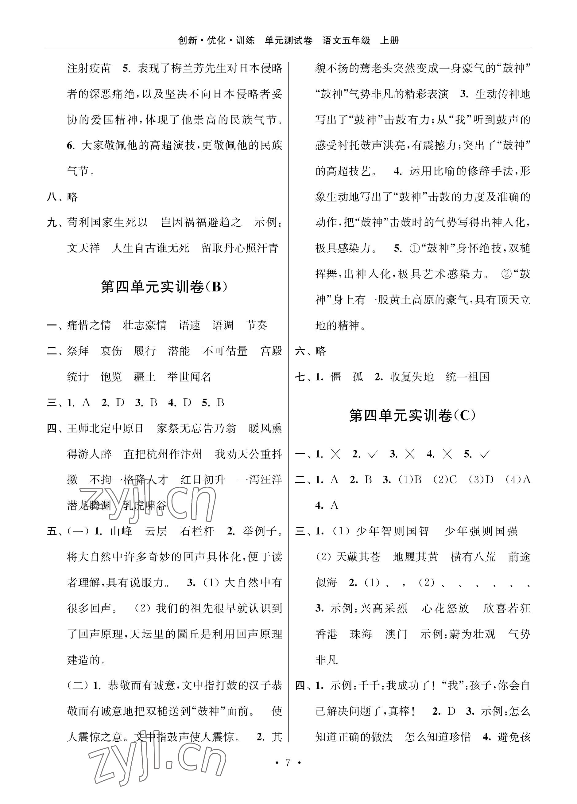 2022年创新优化训练单元测试卷五年级语文上册人教版