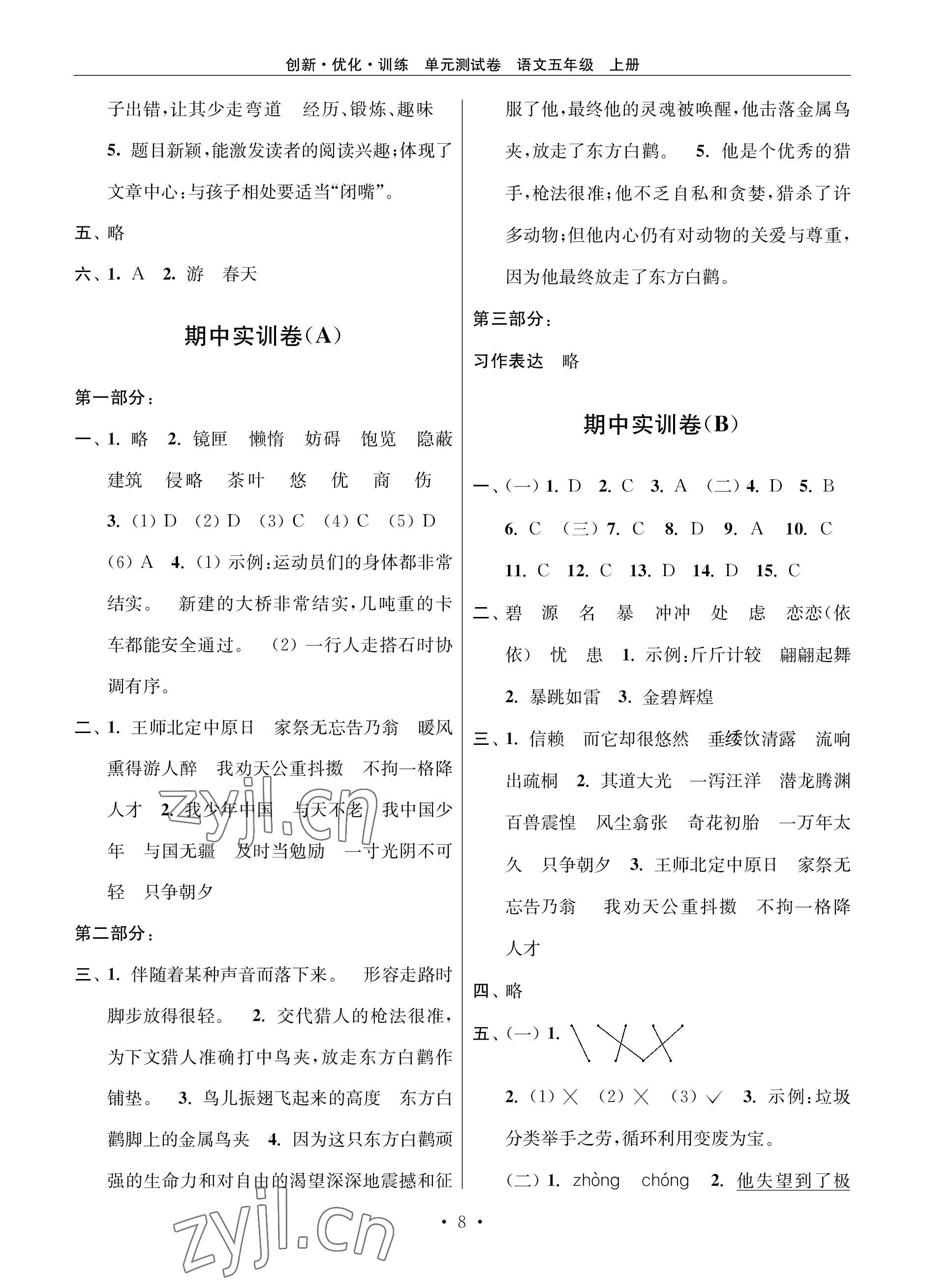 注:目前有些书本章节名称可能整理的还不是很完善,但都是按照顺序排列的,请同学们按照顺序仔细查找。练习册 2022年创新优化训练单元测试卷五年级语文上册人教版 答案主要是用来给同学们做完题方便对答案用的,请勿直接抄袭。