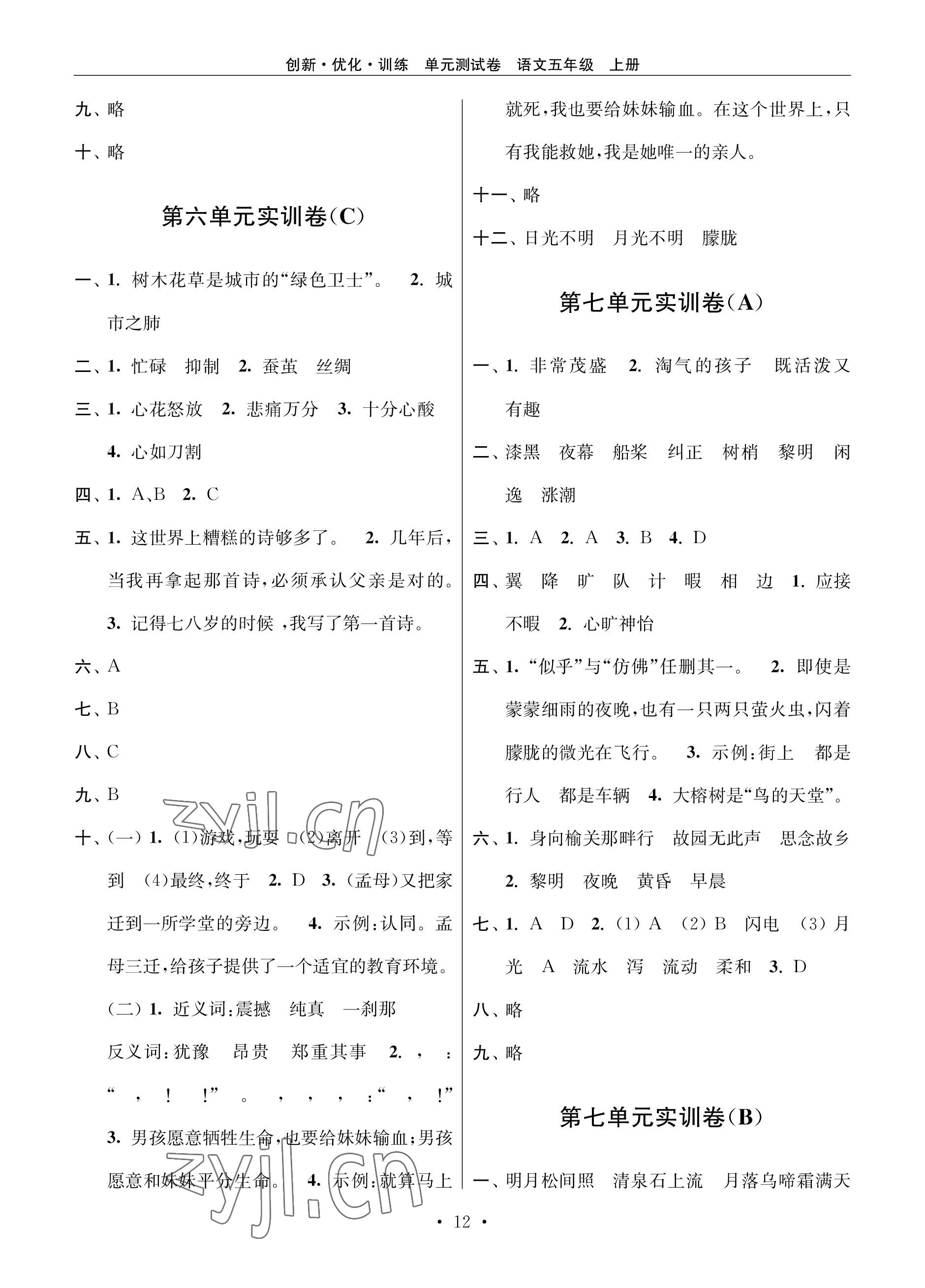 《2022年创新优化训练单元测试卷五年级语文上册人教版》