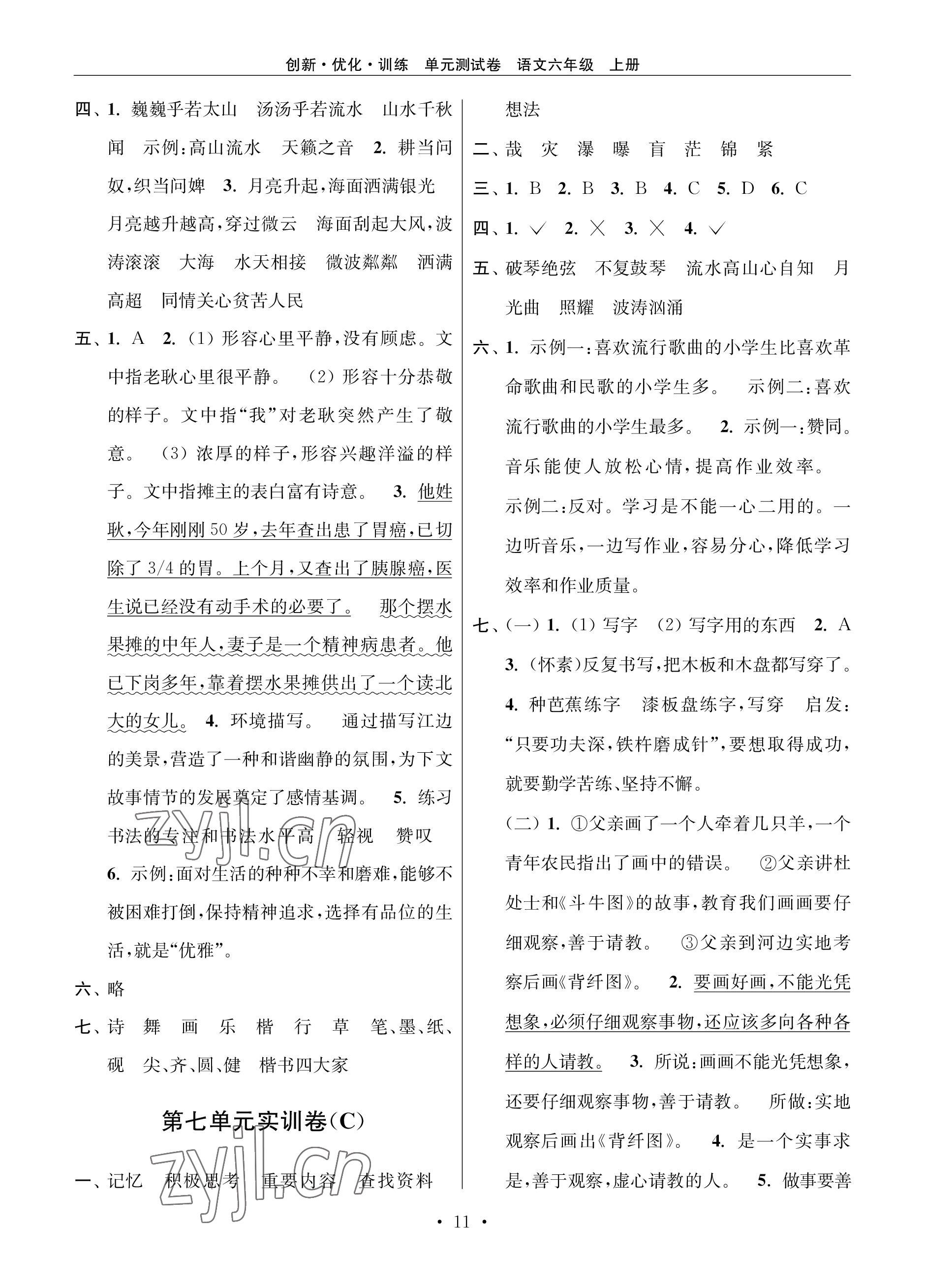注:目前有些书本章节名称可能整理的还不是很完善,但都是按照顺序排列的,请同学们按照顺序仔细查找。练习册 2022年创新优化训练单元测试卷六年级语文上册人教版 答案主要是用来给同学们做完题方便对答案用的,请勿直接抄袭。
