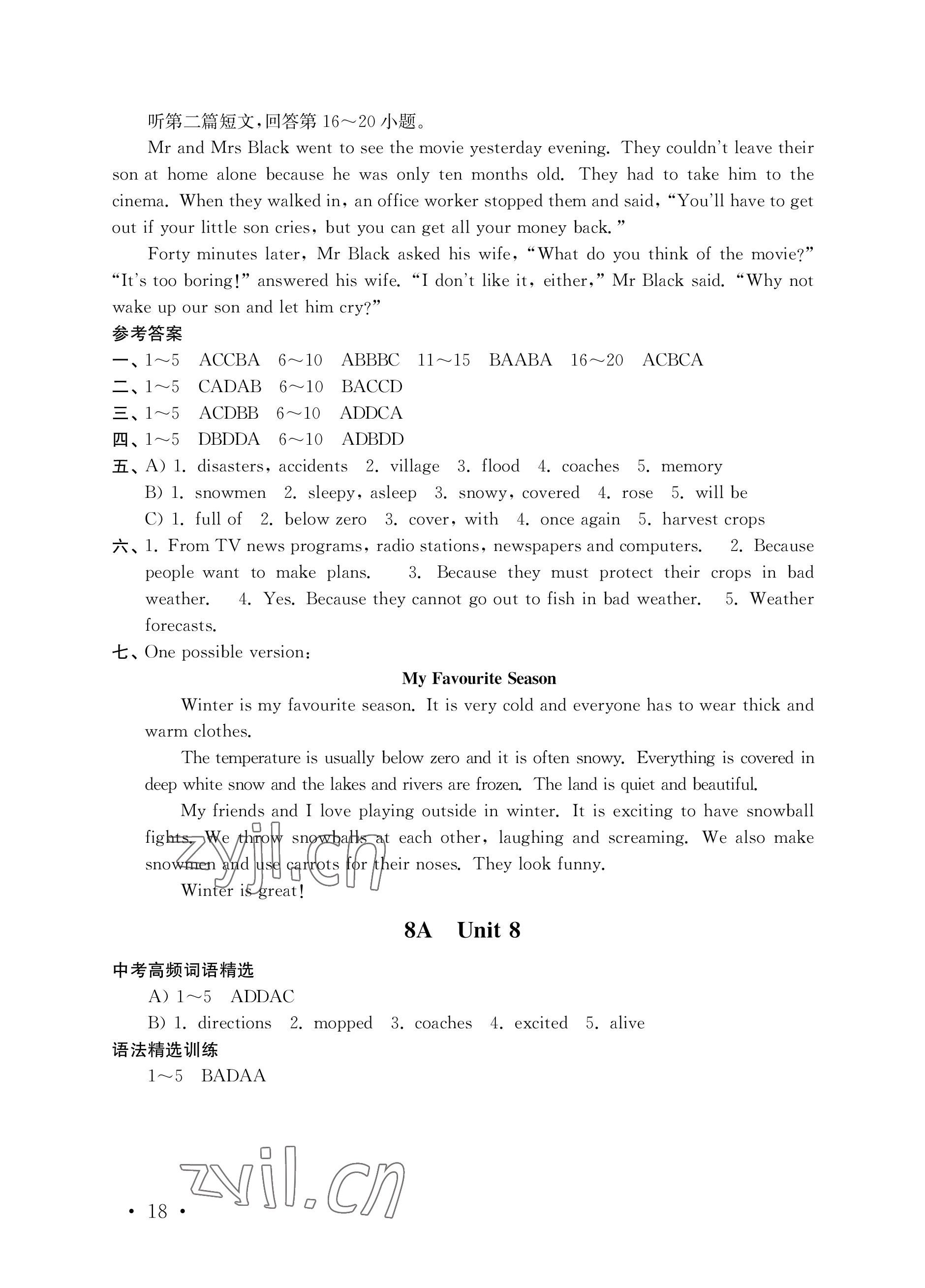 注:目前有些书本章节名称可能整理的还不是很完善,但都是按照顺序排列的,请同学们按照顺序仔细查找。练习册 2022年创新优化训练单元测试卷八年级英语上册译林版 答案主要是用来给同学们做完题方便对答案用的,请勿直接抄袭。