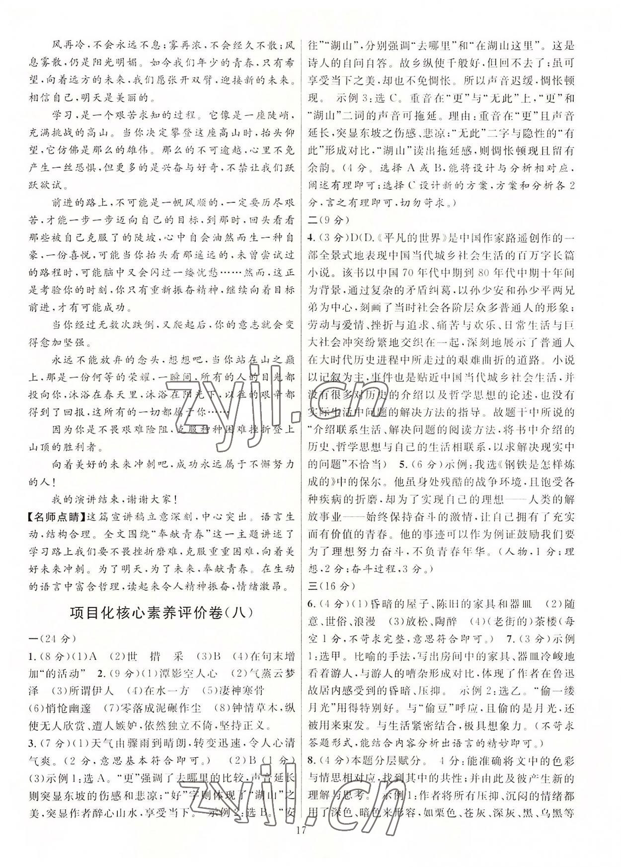注:目前有些书本章节名称可能整理的还不是很完善,但都是按照顺序排列的,请同学们按照顺序仔细查找。练习册 2022年经纶学典组合训练九年级语文人教版浙江专版 答案主要是用来给同学们做完题方便对答案用的,请勿直接抄袭。