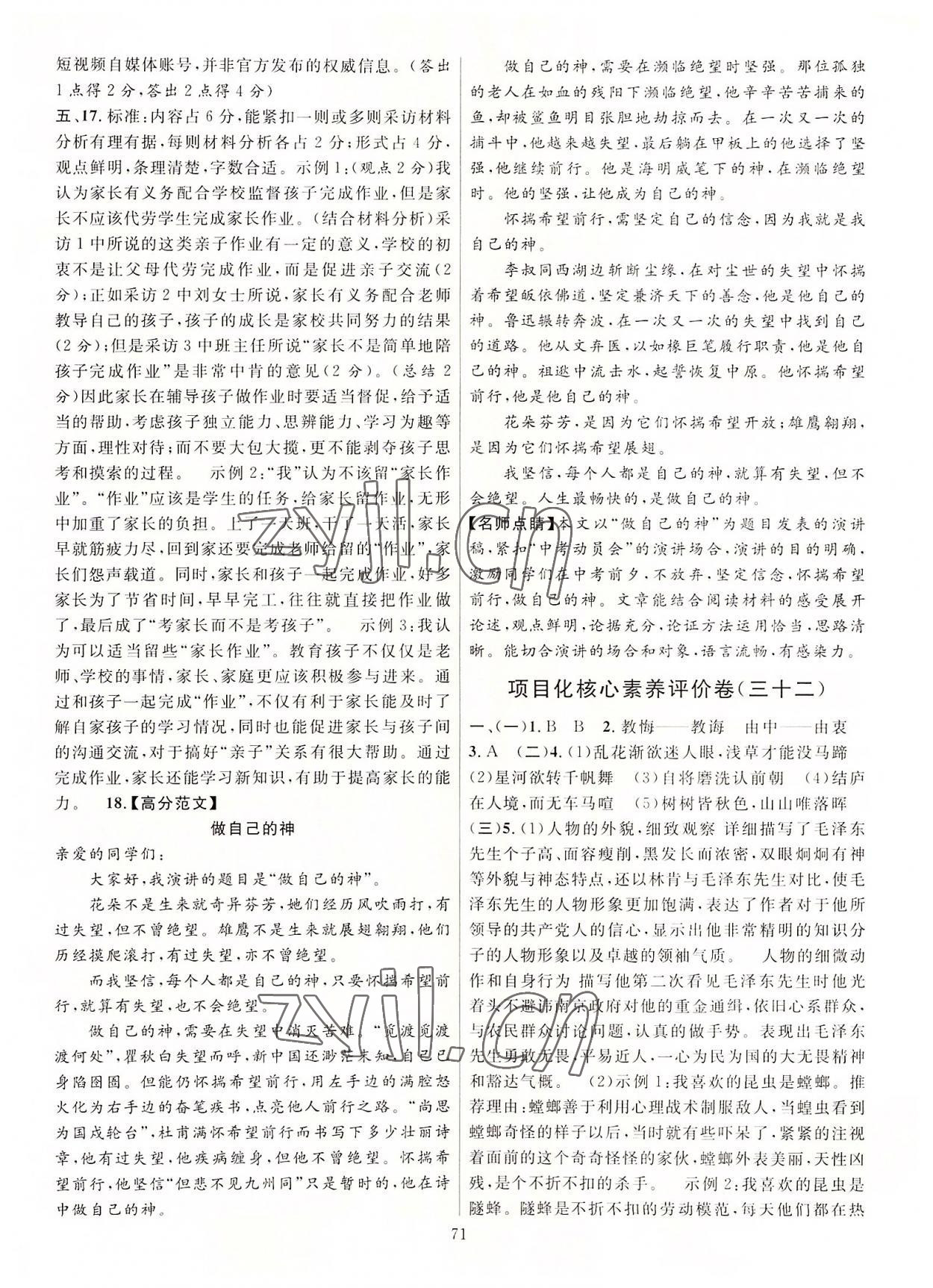 注:目前有些书本章节名称可能整理的还不是很完善,但都是按照顺序排列的,请同学们按照顺序仔细查找。练习册 2022年经纶学典组合训练九年级语文人教版浙江专版 答案主要是用来给同学们做完题方便对答案用的,请勿直接抄袭。