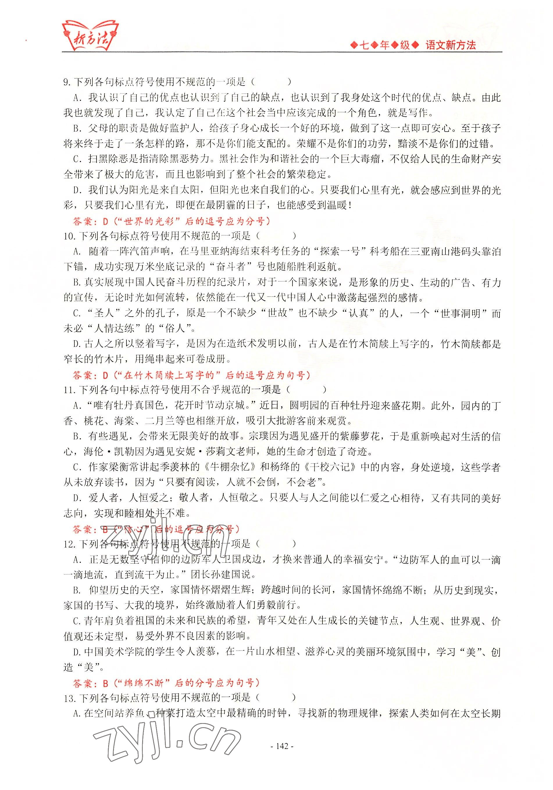 注:目前有些书本章节名称可能整理的还不是很完善,但都是按照顺序排列的,请同学们按照顺序仔细查找。练习册 2023年新方法七年级语文人教版 答案主要是用来给同学们做完题方便对答案用的,请勿直接抄袭。