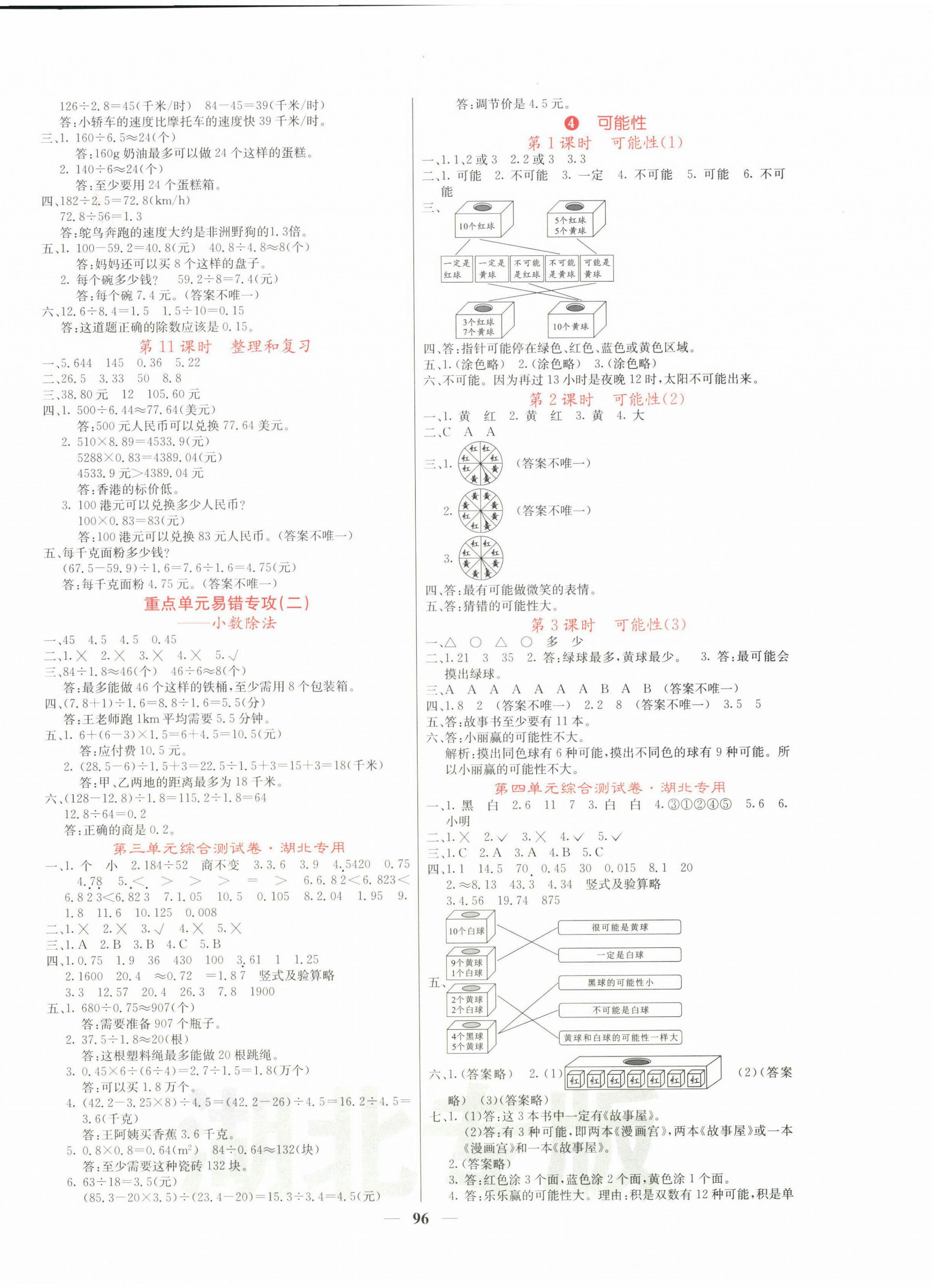 2022年课堂点睛五年级数学上册人教版湖北专版