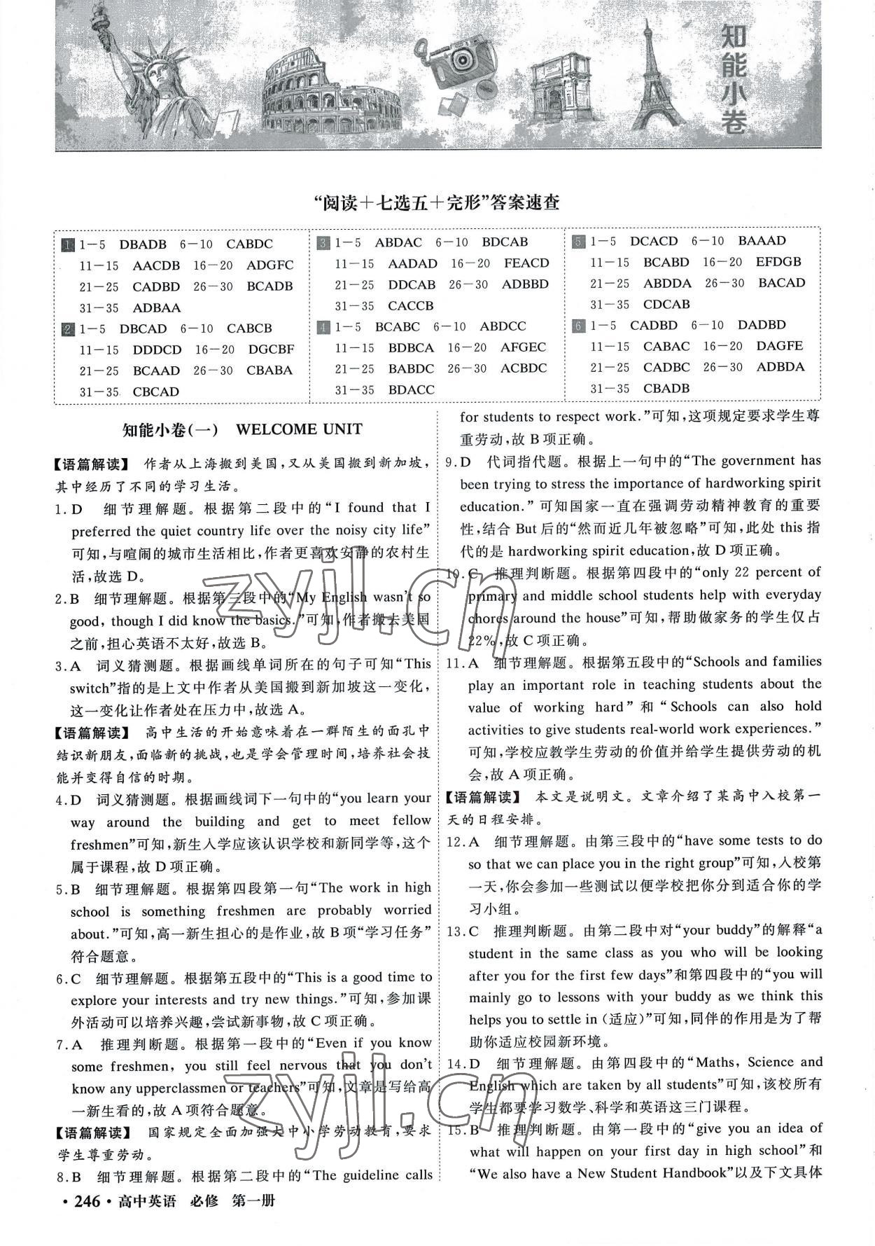 注:目前有些书本章节名称可能整理的还不是很完善,但都是按照顺序排列的,请同学们按照顺序仔细查找。练习册 2022年赢在微点高中英语必修第一册人教版 答案主要是用来给同学们做完题方便对答案用的,请勿直接抄袭。