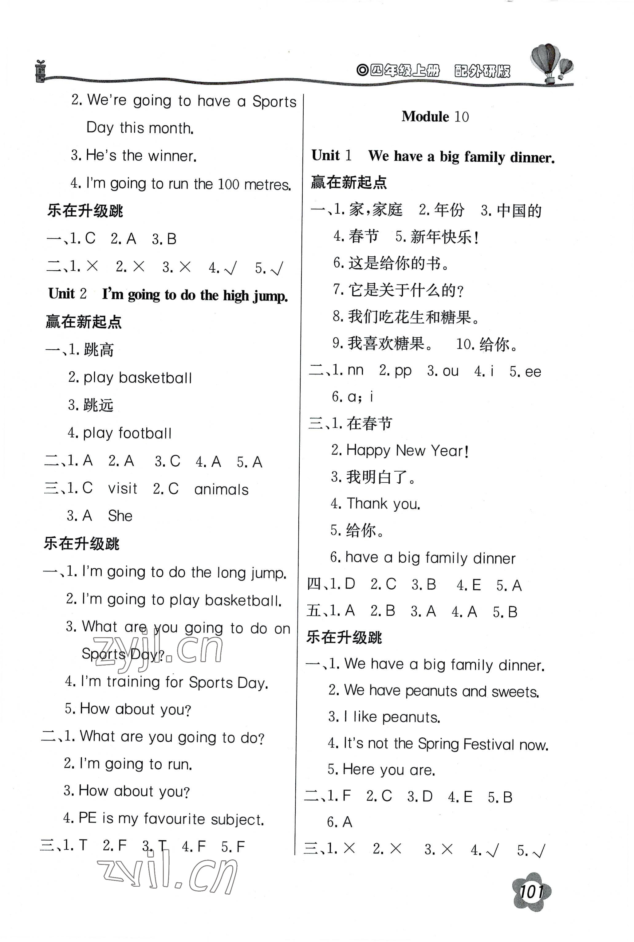 注:目前有些书本章节名称可能整理的还不是很完善,但都是按照顺序排列的,请同学们按照顺序仔细查找。练习册 2022年新课堂同步训练四年级英语上册外研版 答案主要是用来给同学们做完题方便对答案用的,请勿直接抄袭。