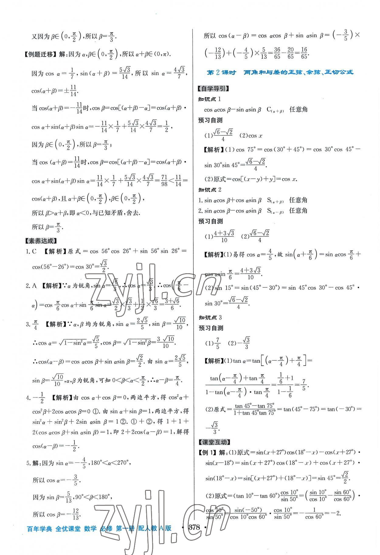 2022年百年学典全优课堂高中数学必修第一册人教版A版