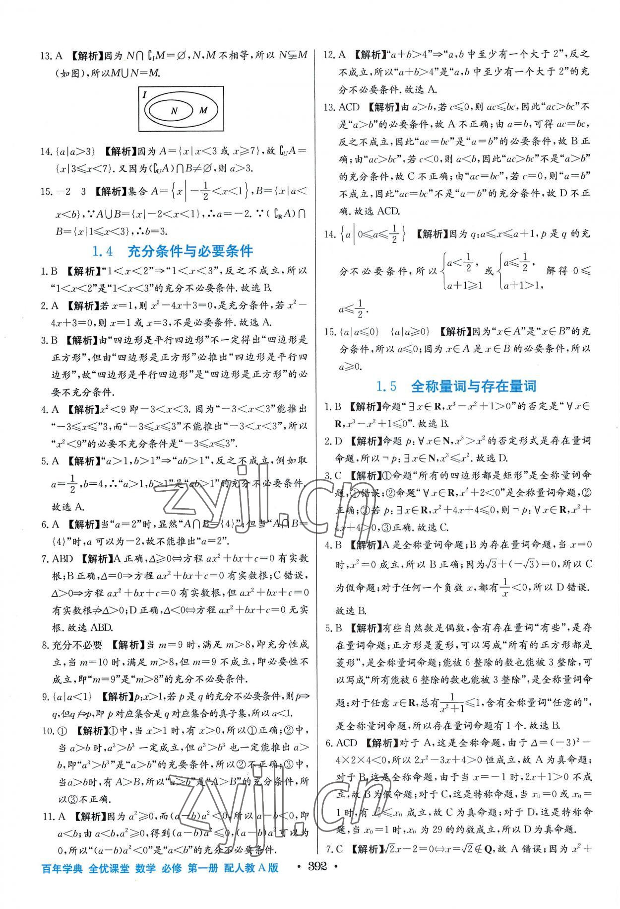 2022年百年学典全优课堂高中数学必修第一册人教版A版