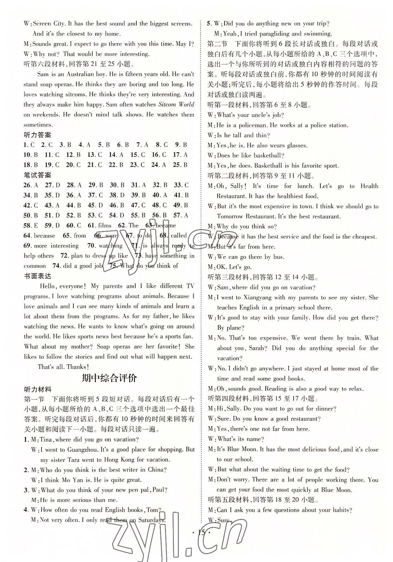 注:目前有些书本章节名称可能整理的还不是很完善,但都是按照顺序排列的,请同学们按照顺序仔细查找。练习册 2022年名师测控八年级英语上册人教版襄阳专版 答案主要是用来给同学们做完题方便对答案用的,请勿直接抄袭。