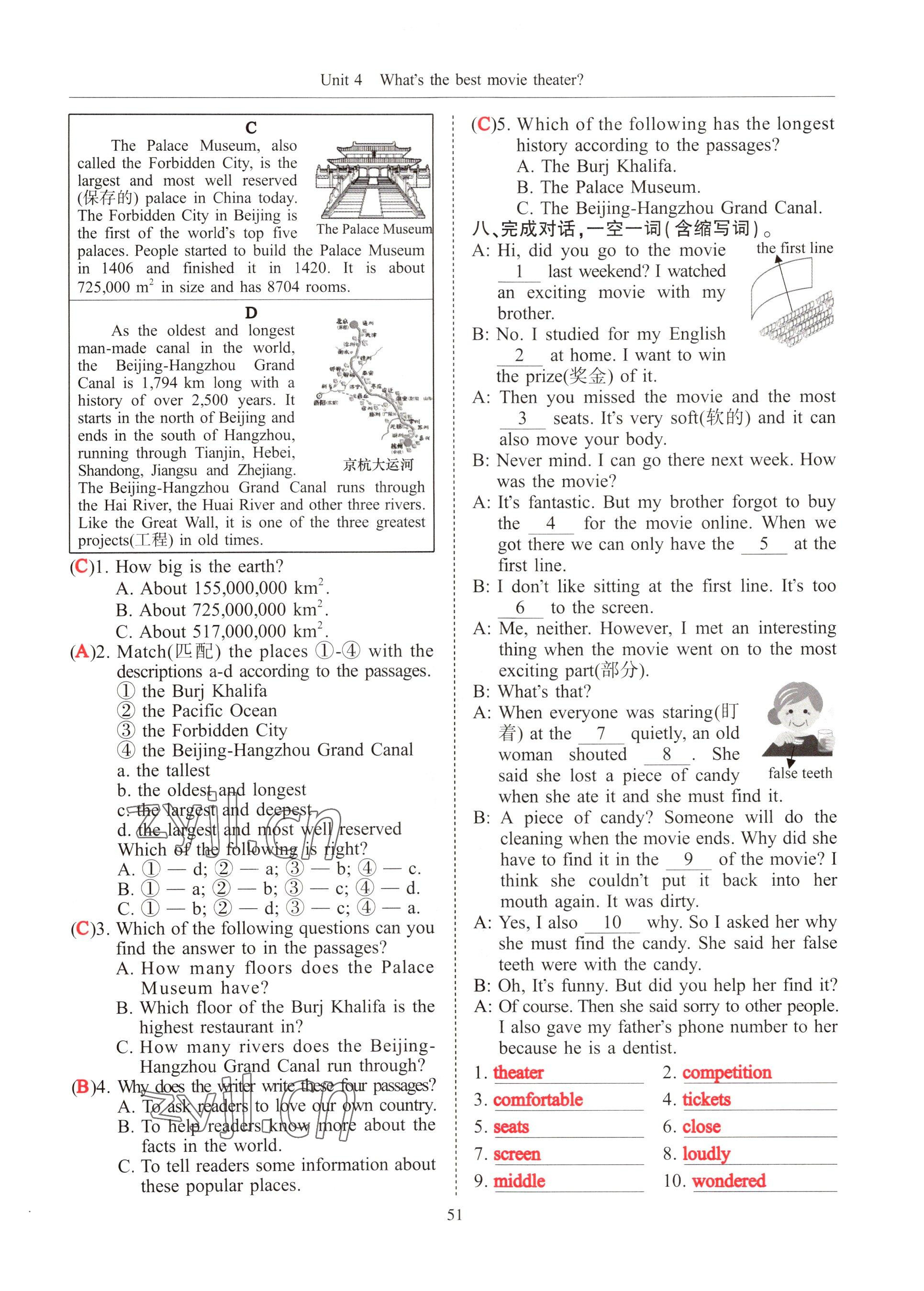 注:目前有些书本章节名称可能整理的还不是很完善,但都是按照顺序排列的,请同学们按照顺序仔细查找。练习册 2022年指南针高分必备八年级英语上册人教版 答案主要是用来给同学们做完题方便对答案用的,请勿直接抄袭。