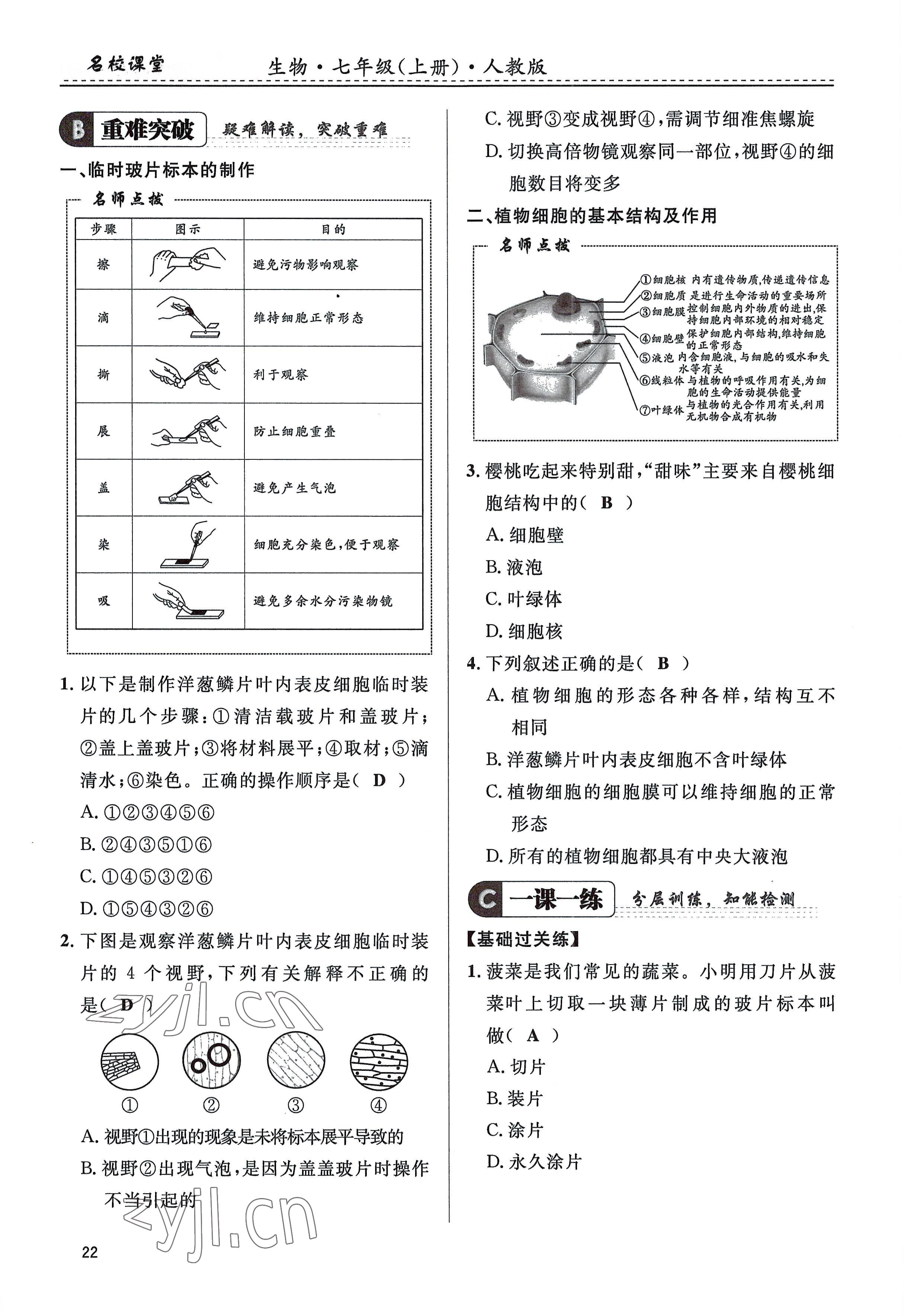 2022年名校课堂贵州人民出版社七年级生物上册人教版