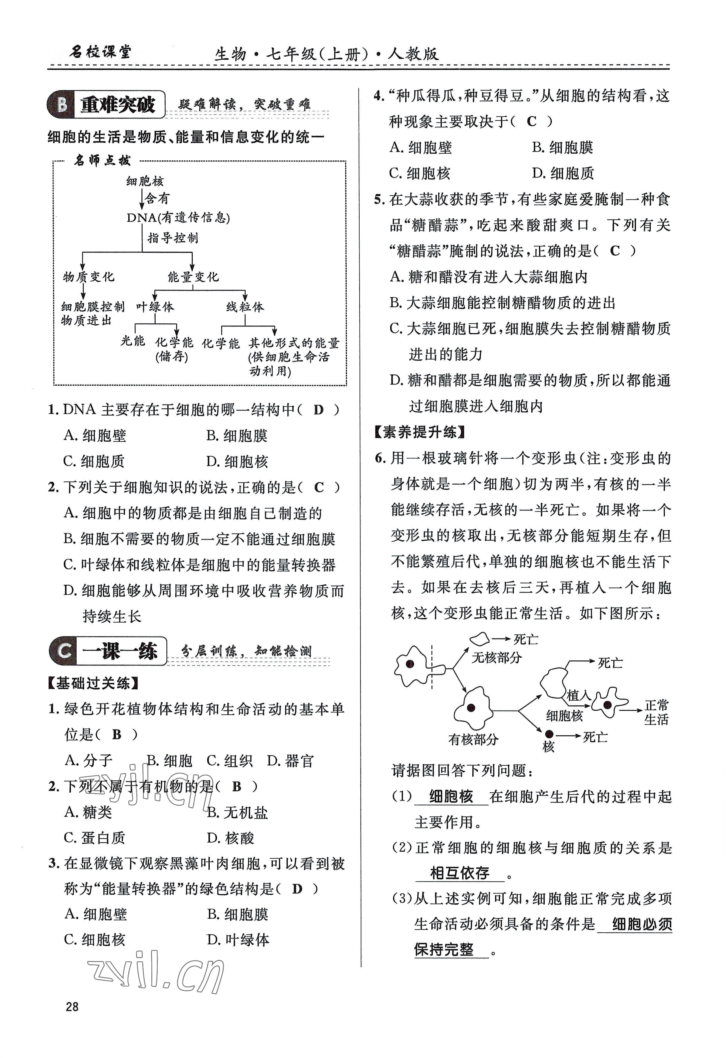 注:目前有些书本章节名称可能整理的还不是很完善,但都是按照顺序排列的,请同学们按照顺序仔细查找。练习册 2022年名校课堂贵州人民出版社七年级生物上册人教版 答案主要是用来给同学们做完题方便对答案用的,请勿直接抄袭。