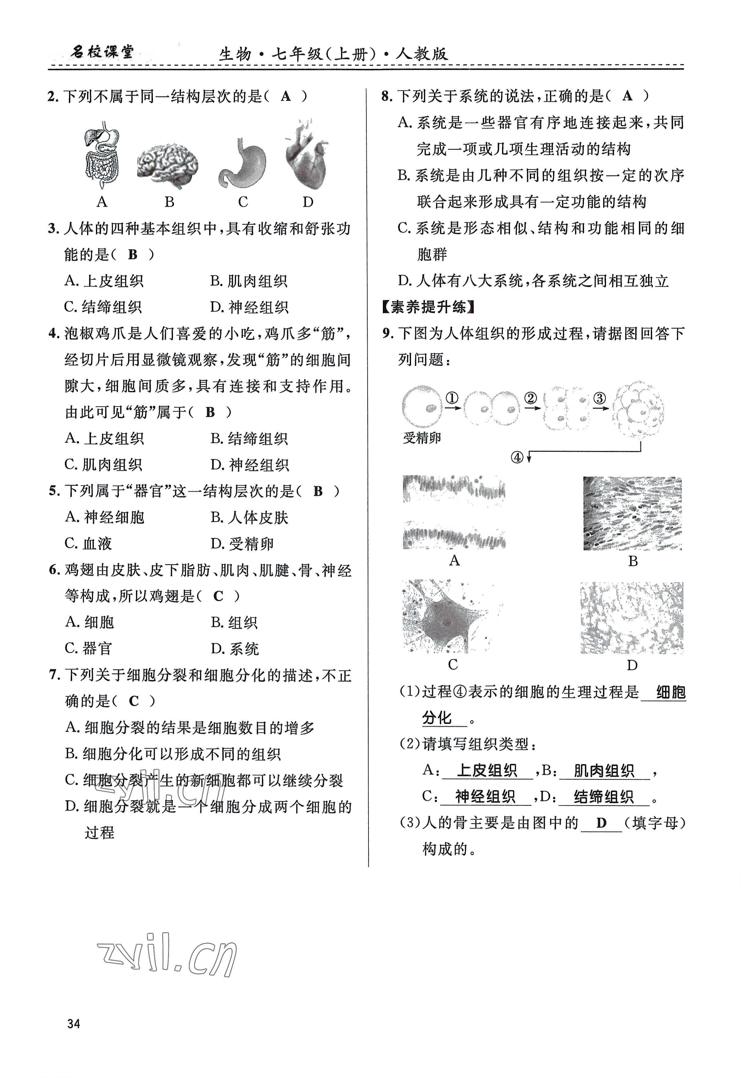 注:目前有些书本章节名称可能整理的还不是很完善,但都是按照顺序排列的,请同学们按照顺序仔细查找。练习册 2022年名校课堂贵州人民出版社七年级生物上册人教版 答案主要是用来给同学们做完题方便对答案用的,请勿直接抄袭。