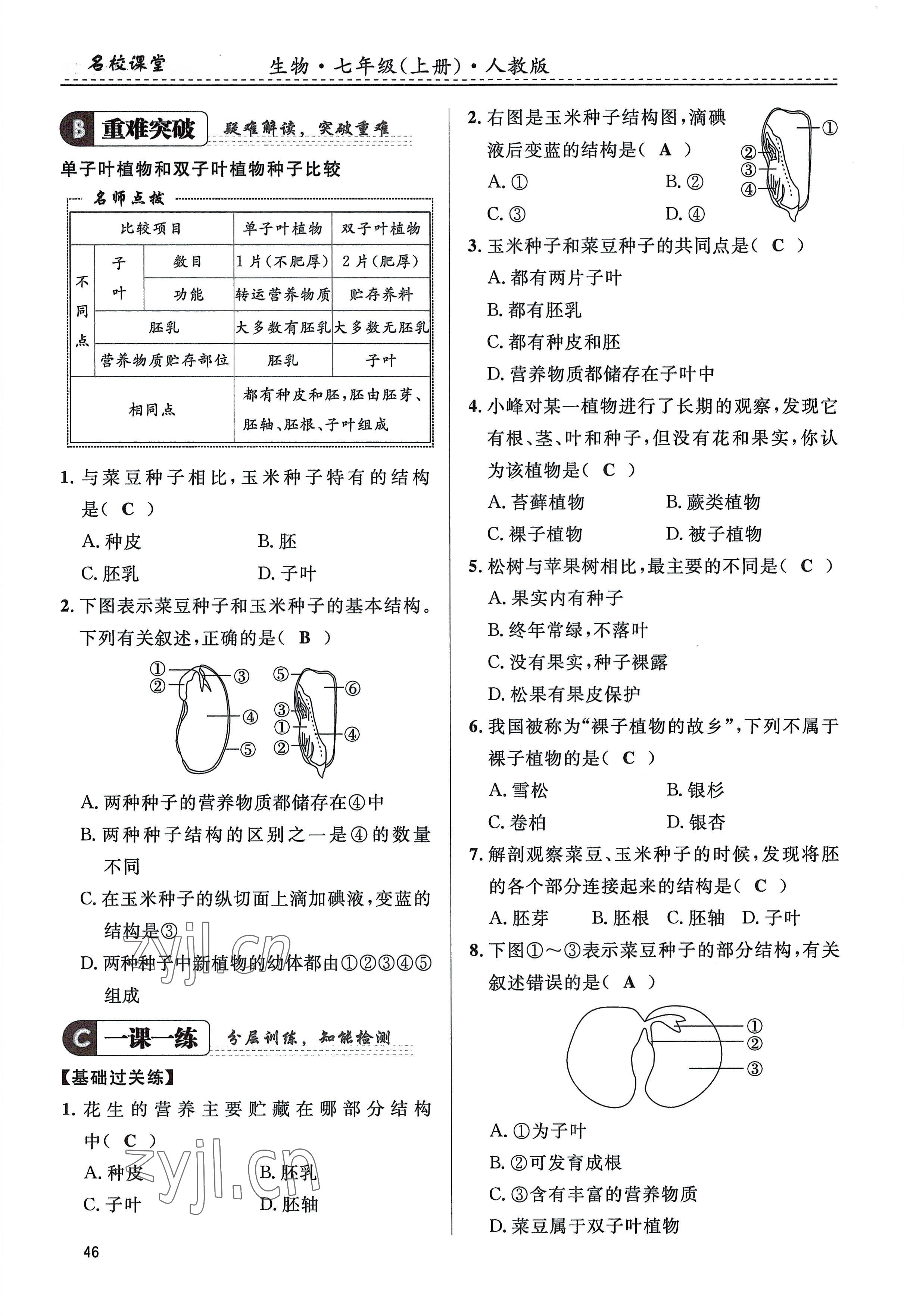 注:目前有些书本章节名称可能整理的还不是很完善,但都是按照顺序排列的,请同学们按照顺序仔细查找。练习册 2022年名校课堂贵州人民出版社七年级生物上册人教版 答案主要是用来给同学们做完题方便对答案用的,请勿直接抄袭。