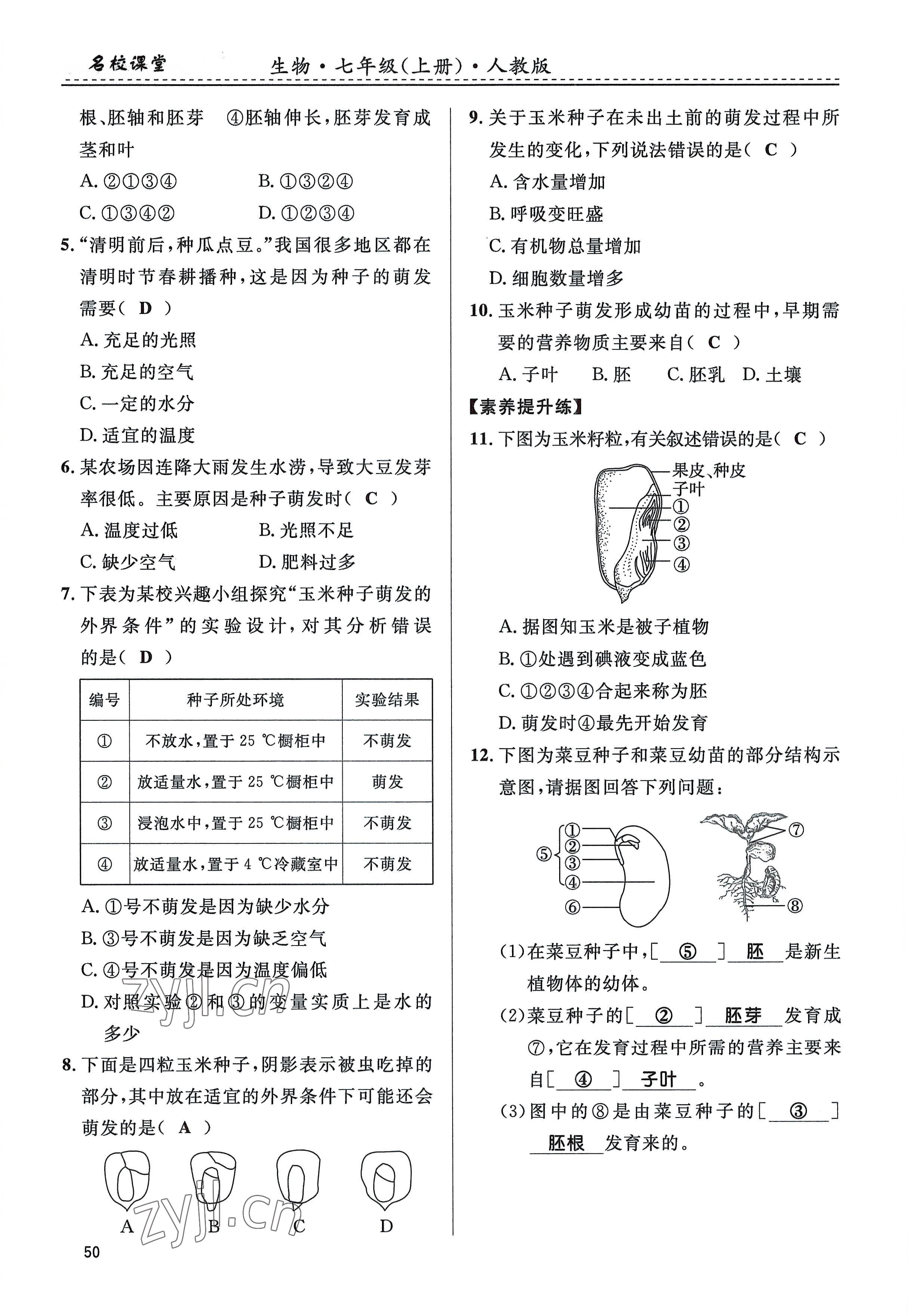 注:目前有些书本章节名称可能整理的还不是很完善,但都是按照顺序排列的,请同学们按照顺序仔细查找。练习册 2022年名校课堂贵州人民出版社七年级生物上册人教版 答案主要是用来给同学们做完题方便对答案用的,请勿直接抄袭。