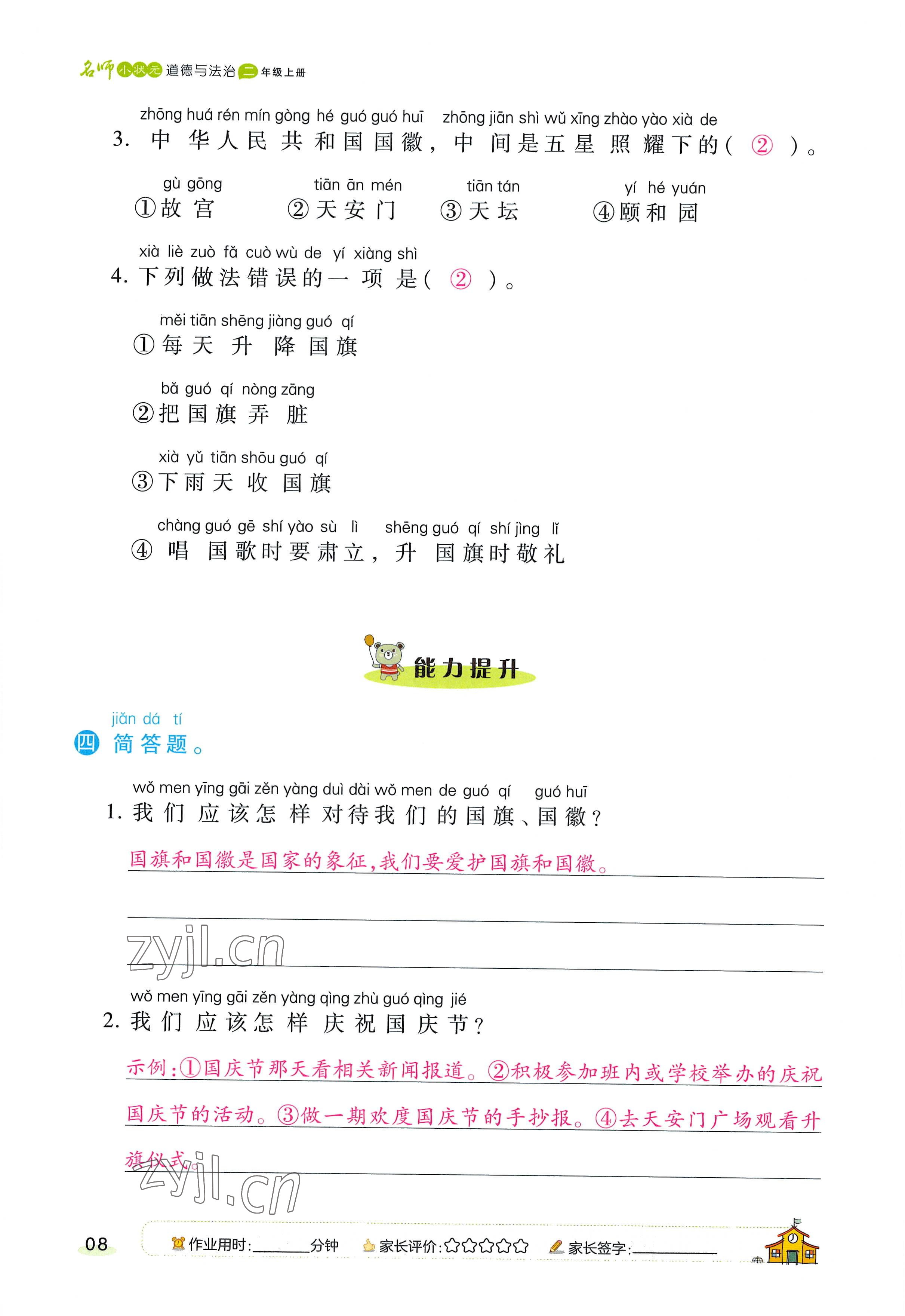注:目前有些书本章节名称可能整理的还不是很完善,但都是按照顺序排列的,请同学们按照顺序仔细查找。练习册 2022年名师小状元课时作业本二年级道德与法治上册人教版 答案主要是用来给同学们做完题方便对答案用的,请勿直接抄袭。