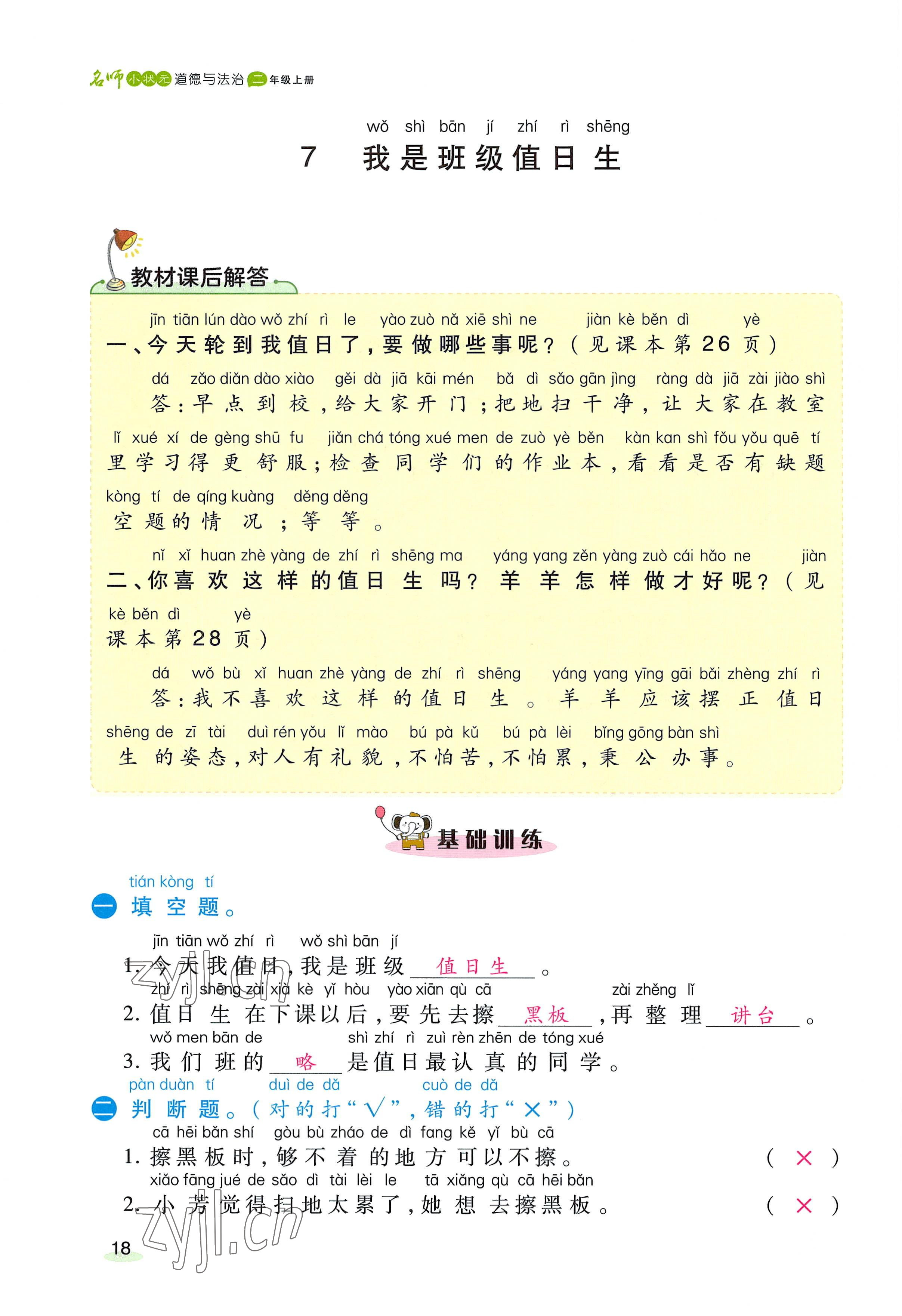 注:目前有些书本章节名称可能整理的还不是很完善,但都是按照顺序排列的,请同学们按照顺序仔细查找。练习册 2022年名师小状元课时作业本二年级道德与法治上册人教版 答案主要是用来给同学们做完题方便对答案用的,请勿直接抄袭。