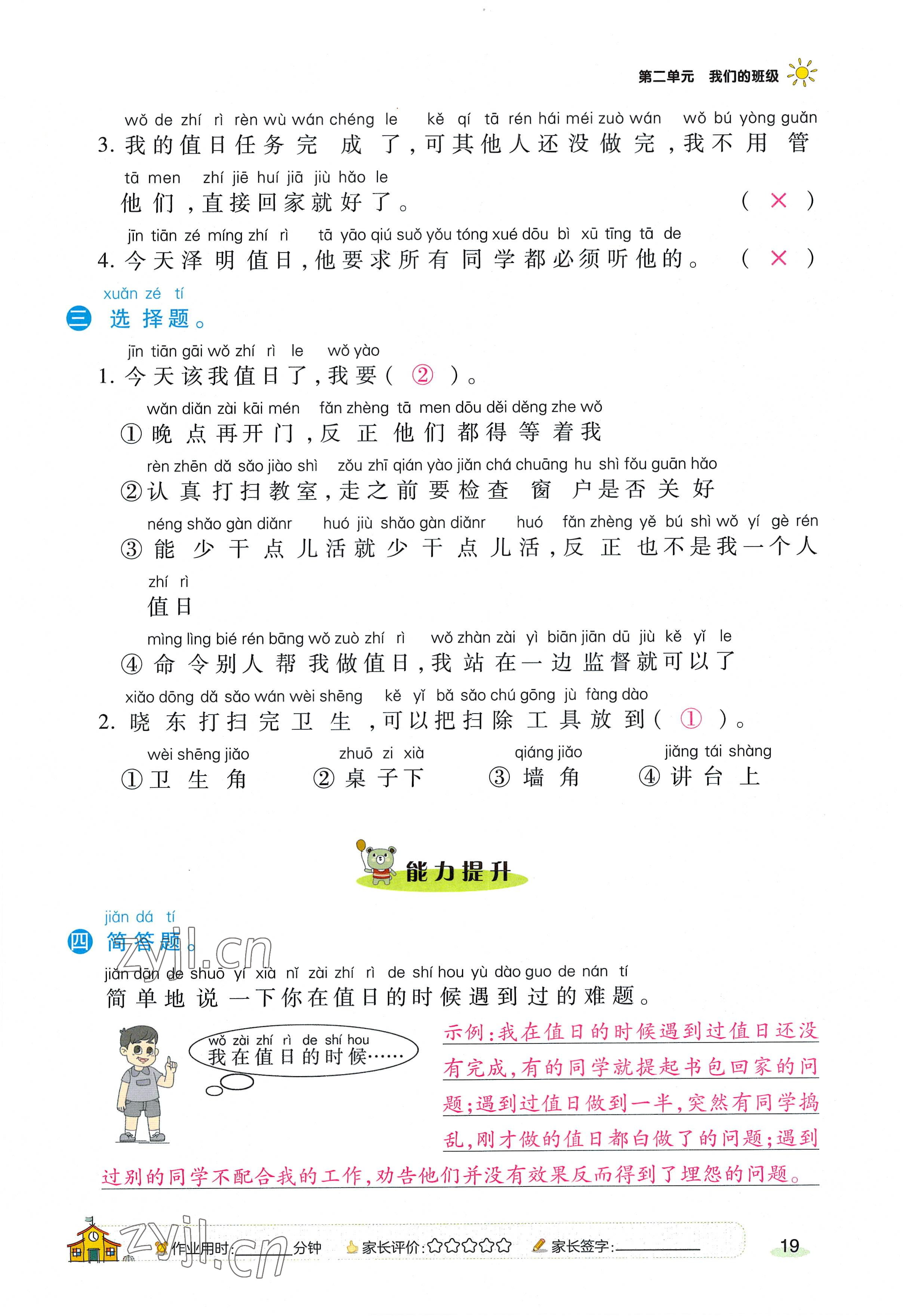 2022年名师小状元课时作业本二年级道德与法治上册人教版
