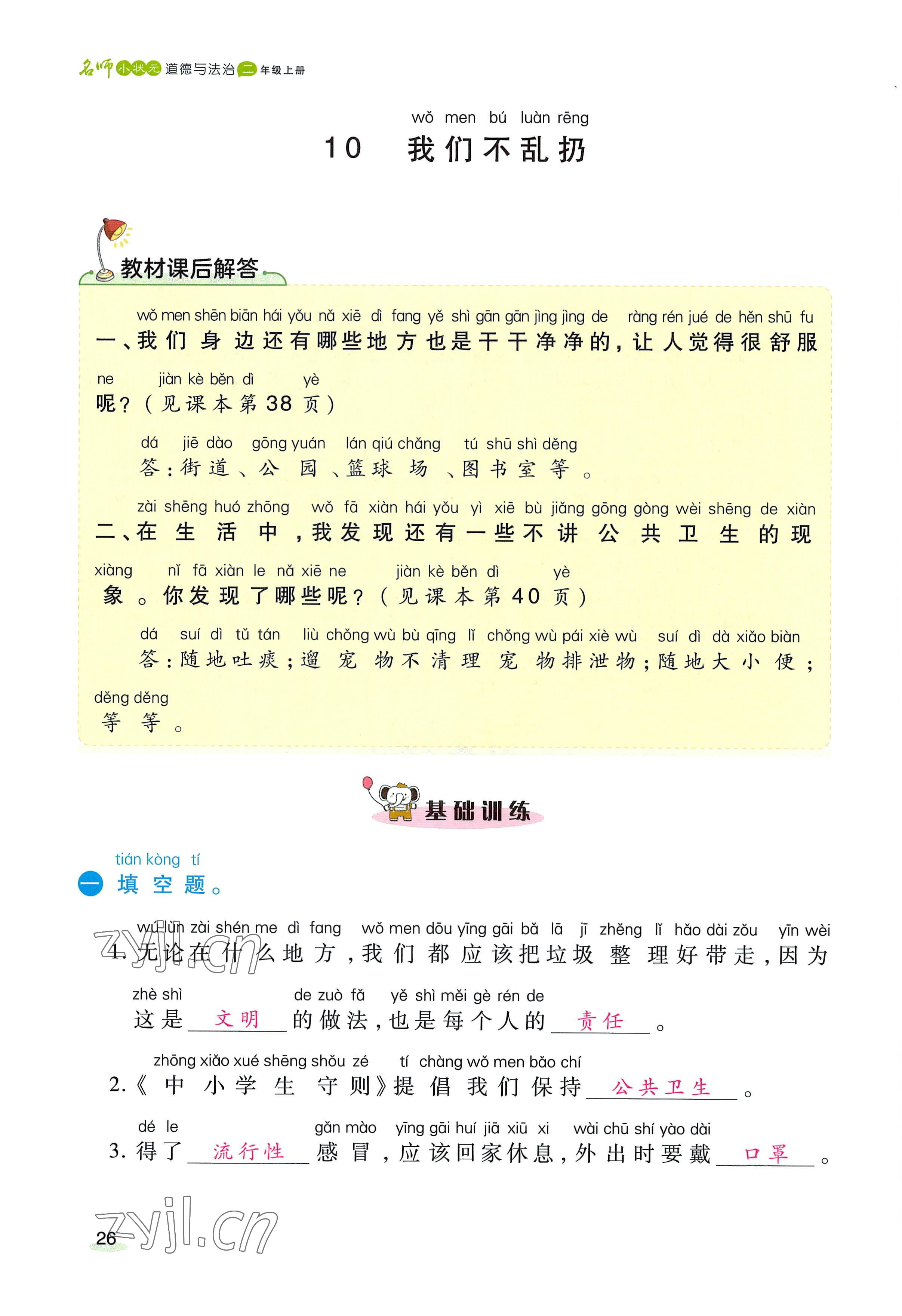 注:目前有些书本章节名称可能整理的还不是很完善,但都是按照顺序排列的,请同学们按照顺序仔细查找。练习册 2022年名师小状元课时作业本二年级道德与法治上册人教版 答案主要是用来给同学们做完题方便对答案用的,请勿直接抄袭。