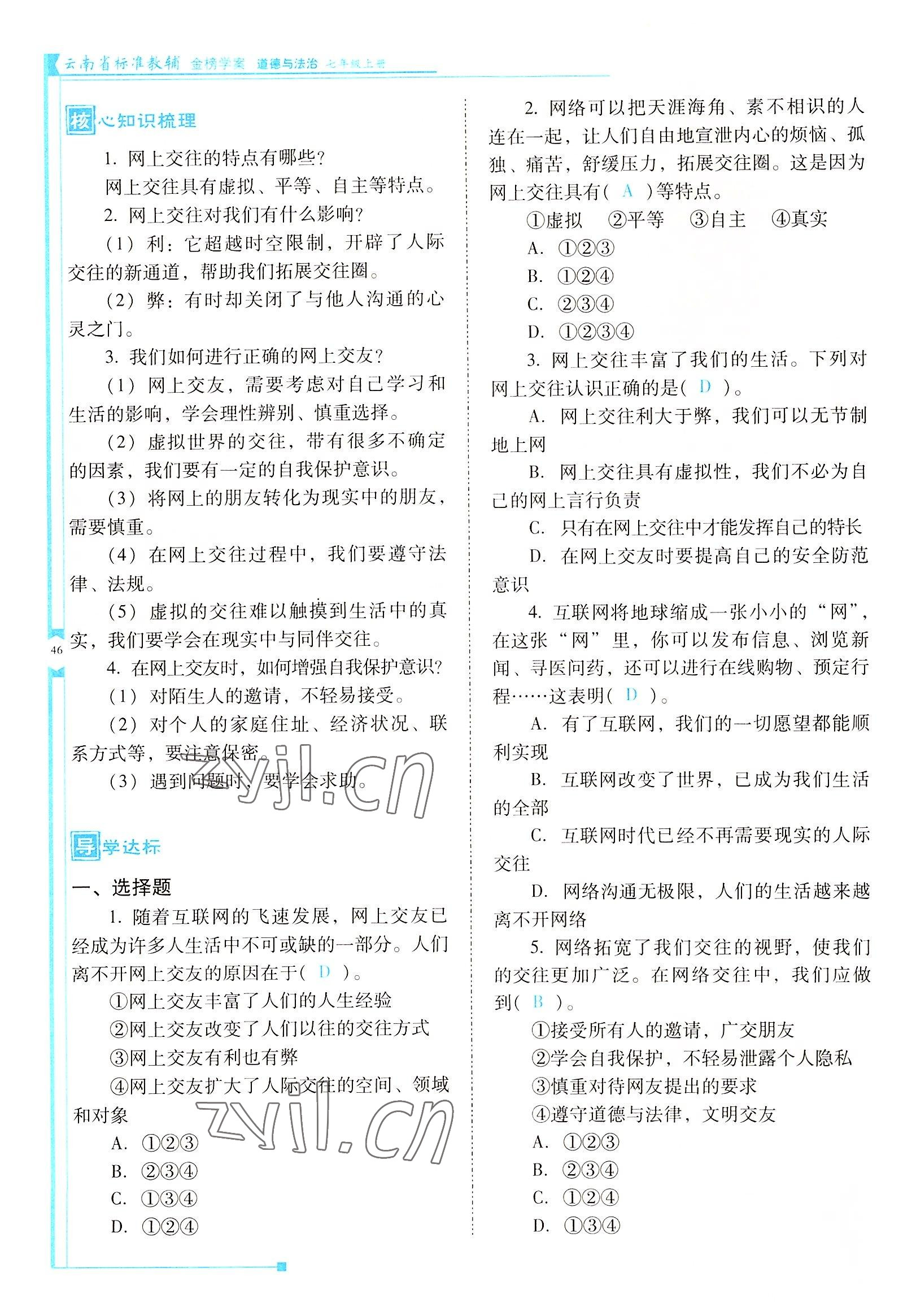2022年云南省标准教辅金榜学案七年级道德与法治上册人教版云南专版