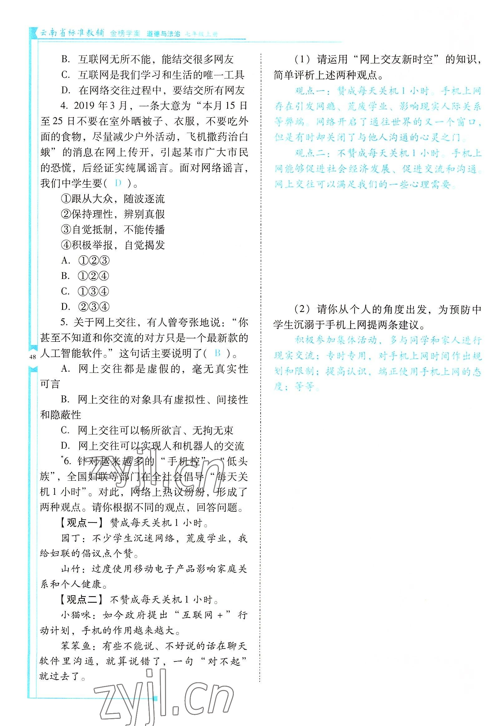 2022年云南省标准教辅金榜学案七年级道德与法治上册人教版云南专版