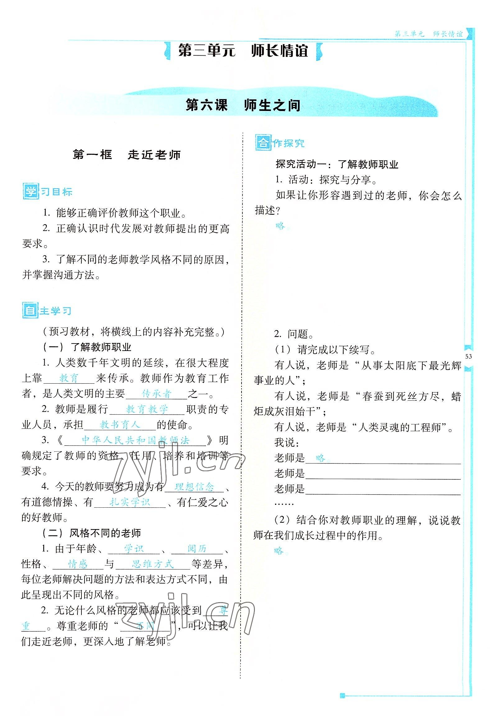 2022年云南省标准教辅金榜学案七年级道德与法治上册人教版云南专版