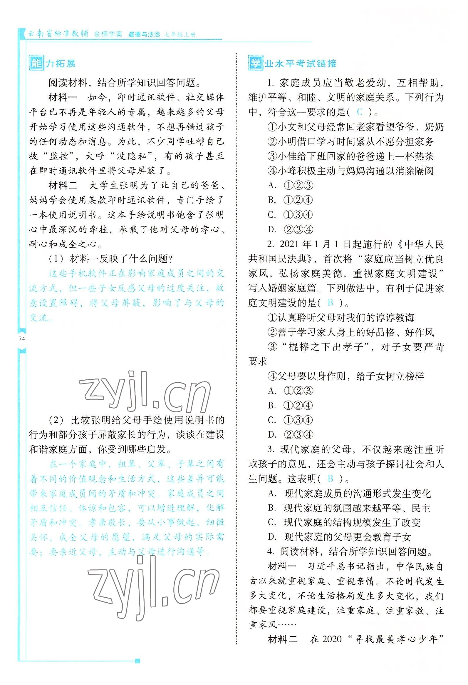 2022年云南省标准教辅金榜学案七年级道德与法治上册人教版云南专版