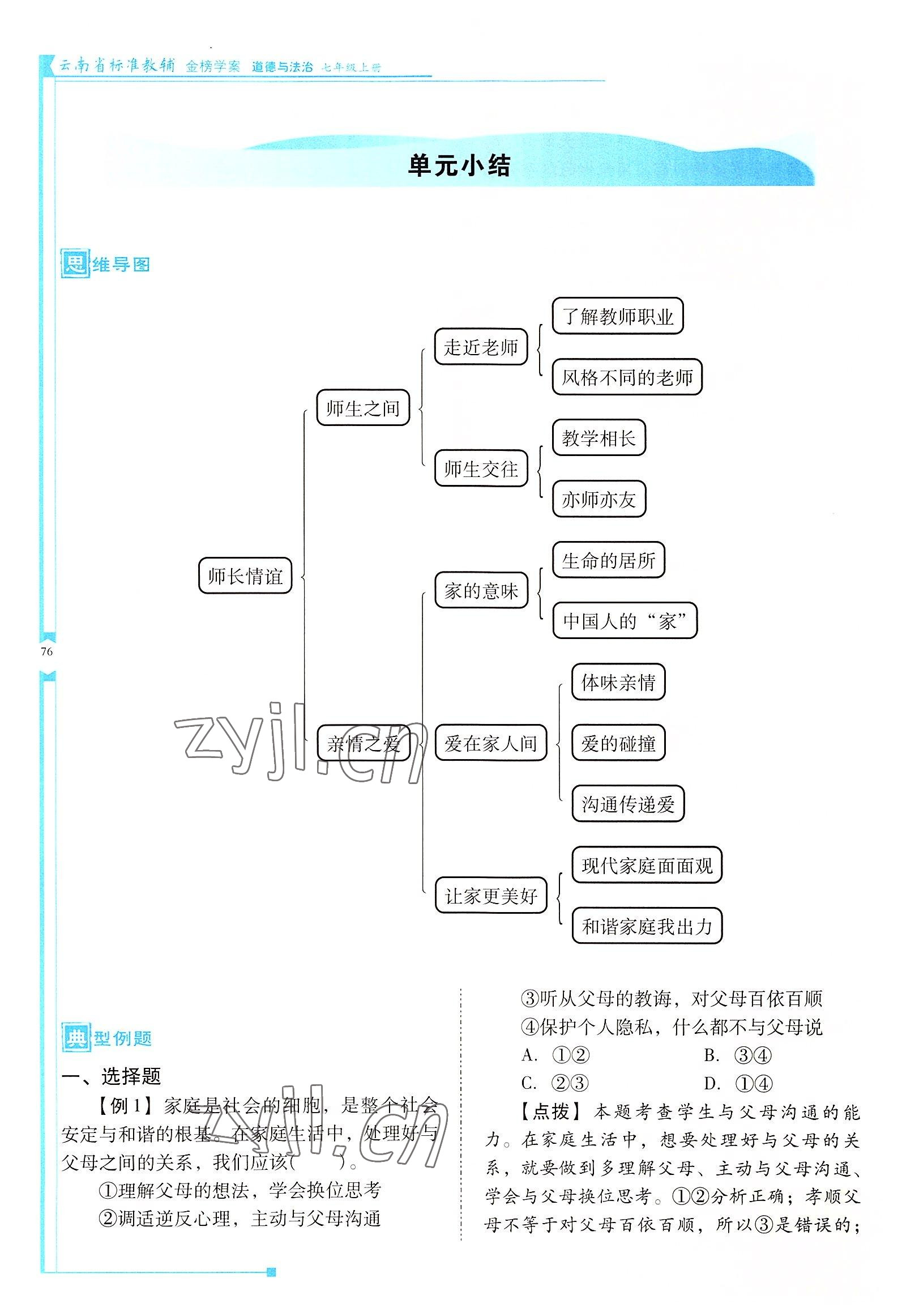 2022年云南省标准教辅金榜学案七年级道德与法治上册人教版云南专版