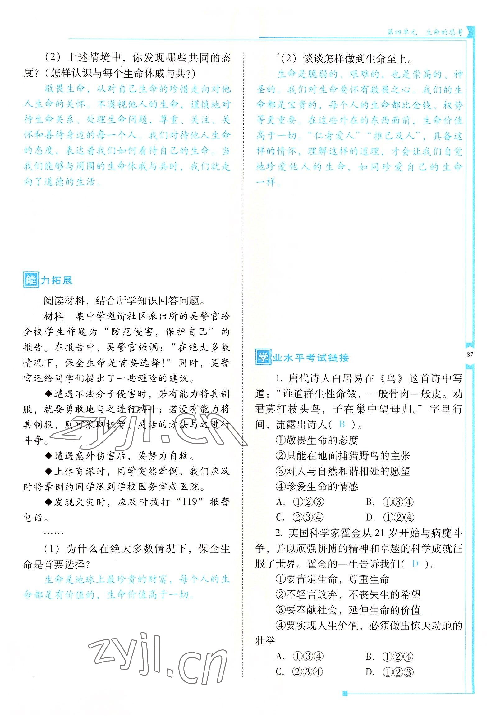 - 参考答案第87页