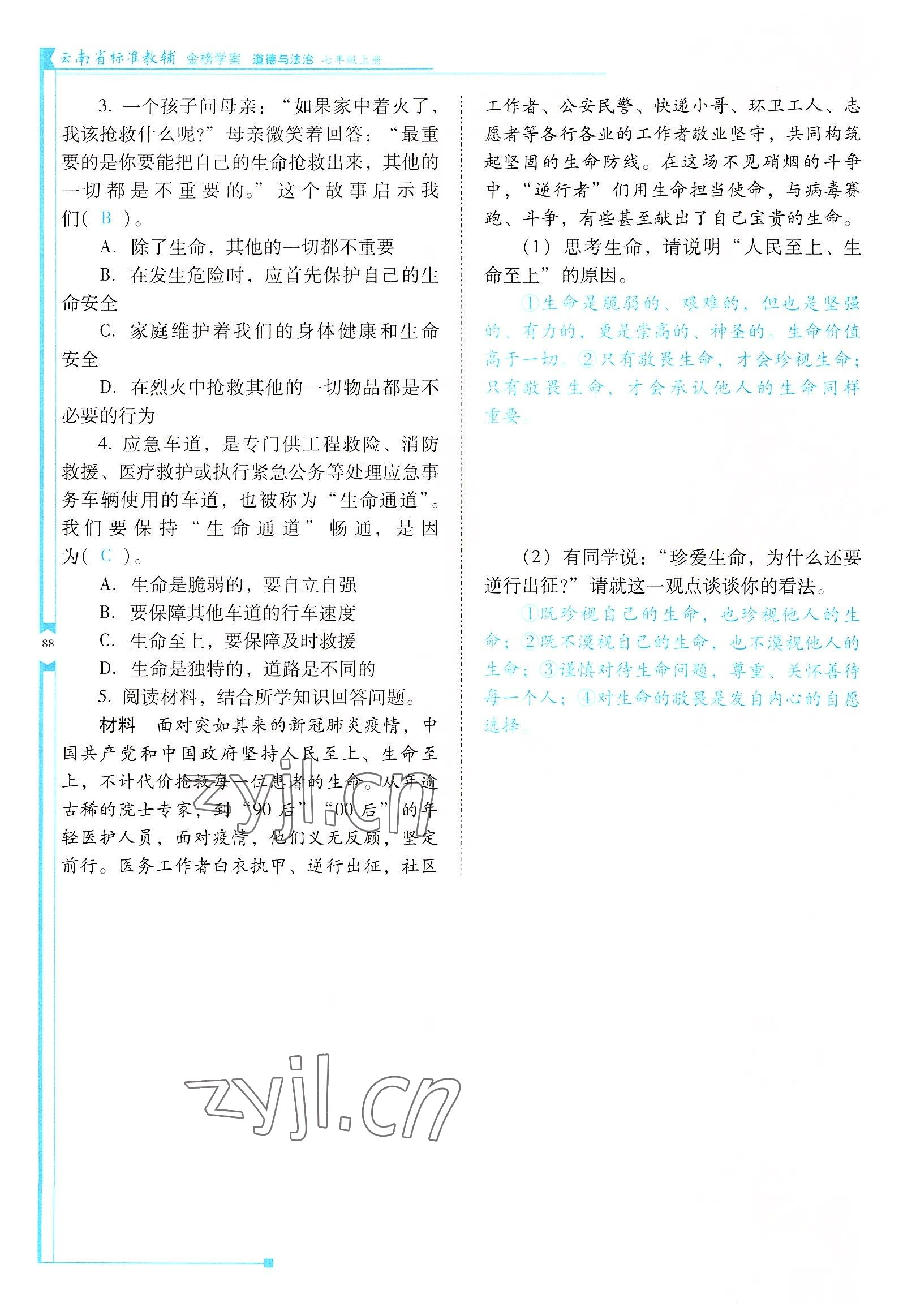 2022年云南省标准教辅金榜学案七年级道德与法治上册人教版云南专版