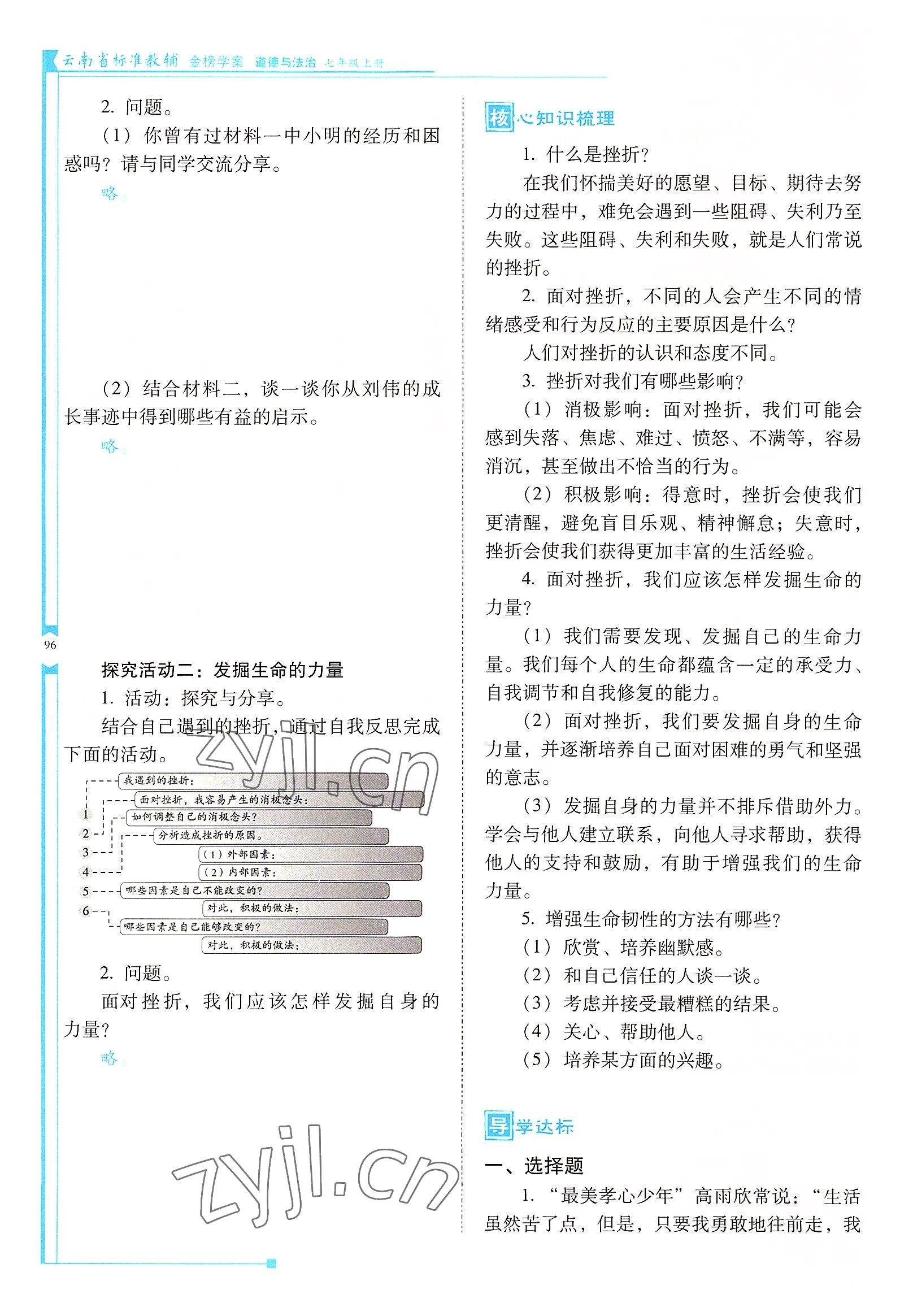 2022年云南省标准教辅金榜学案七年级道德与法治上册人教版云南专版