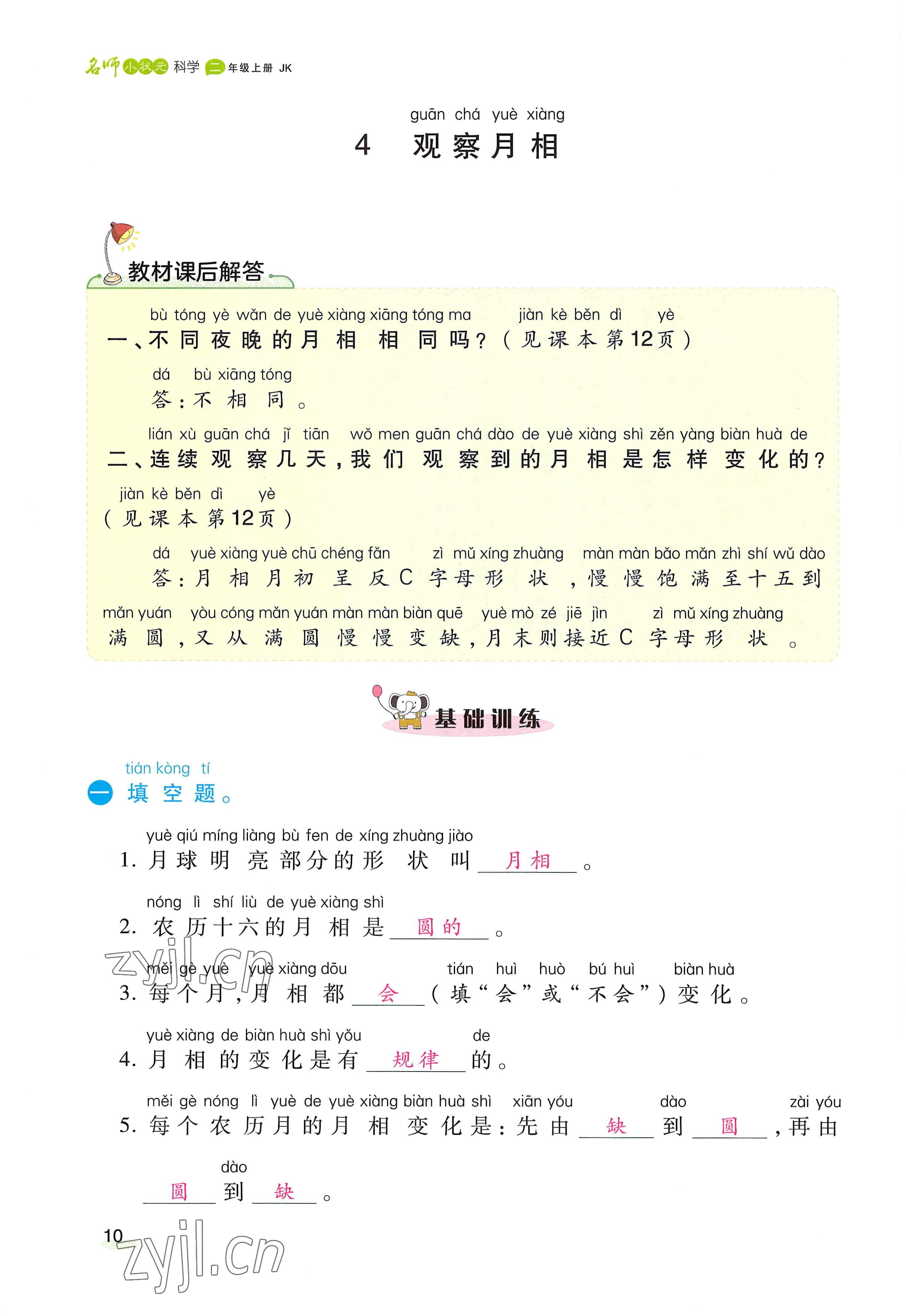 注:目前有些书本章节名称可能整理的还不是很完善,但都是按照顺序排列的,请同学们按照顺序仔细查找。练习册 2022年名师小状元课时作业本二年级科学上册教科版 答案主要是用来给同学们做完题方便对答案用的,请勿直接抄袭。