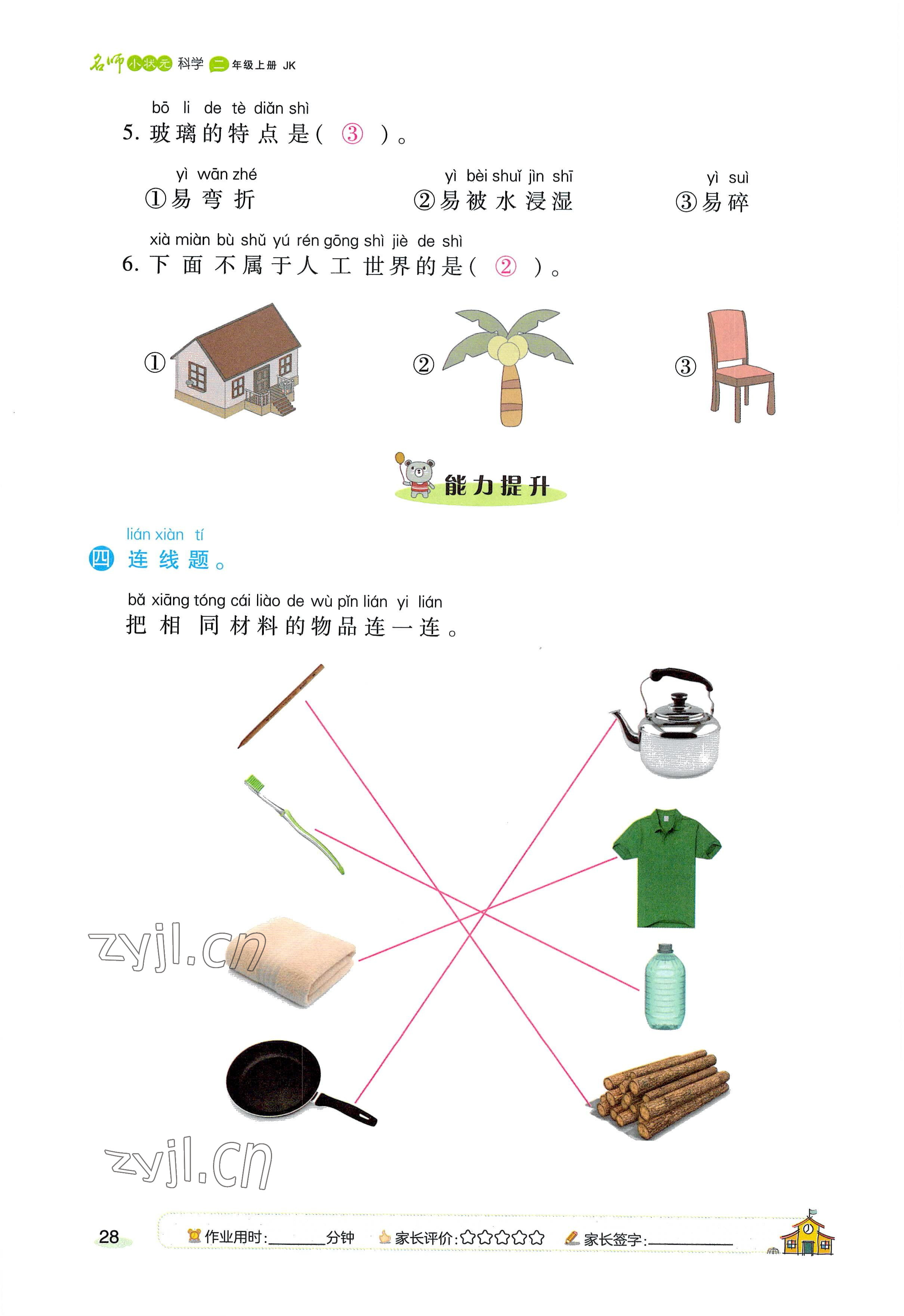 注:目前有些书本章节名称可能整理的还不是很完善,但都是按照顺序排列的,请同学们按照顺序仔细查找。练习册 2022年名师小状元课时作业本二年级科学上册教科版 答案主要是用来给同学们做完题方便对答案用的,请勿直接抄袭。