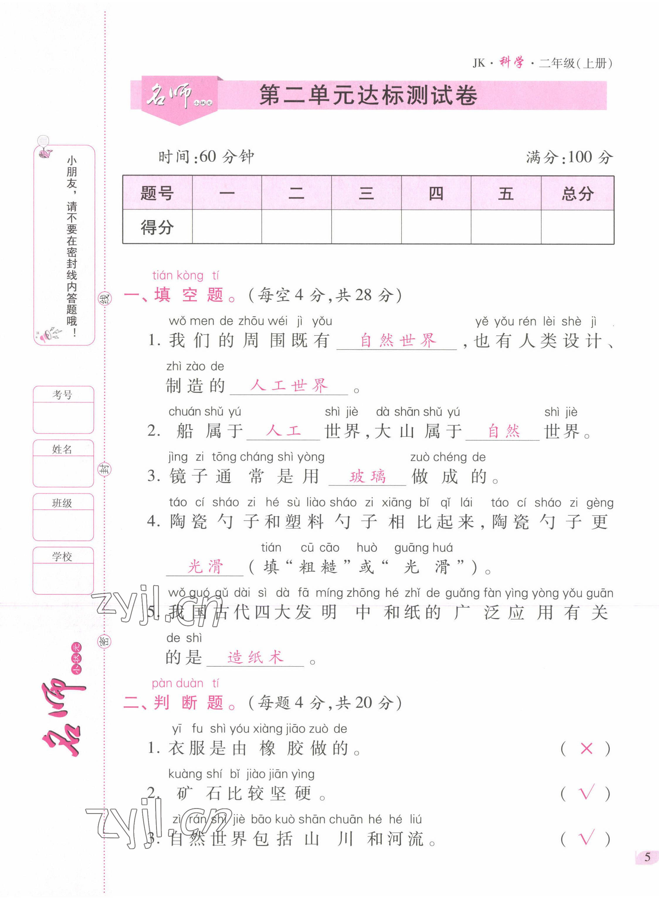 注:目前有些书本章节名称可能整理的还不是很完善,但都是按照顺序排列的,请同学们按照顺序仔细查找。练习册 2022年名师小状元课时作业本二年级科学上册教科版 答案主要是用来给同学们做完题方便对答案用的,请勿直接抄袭。