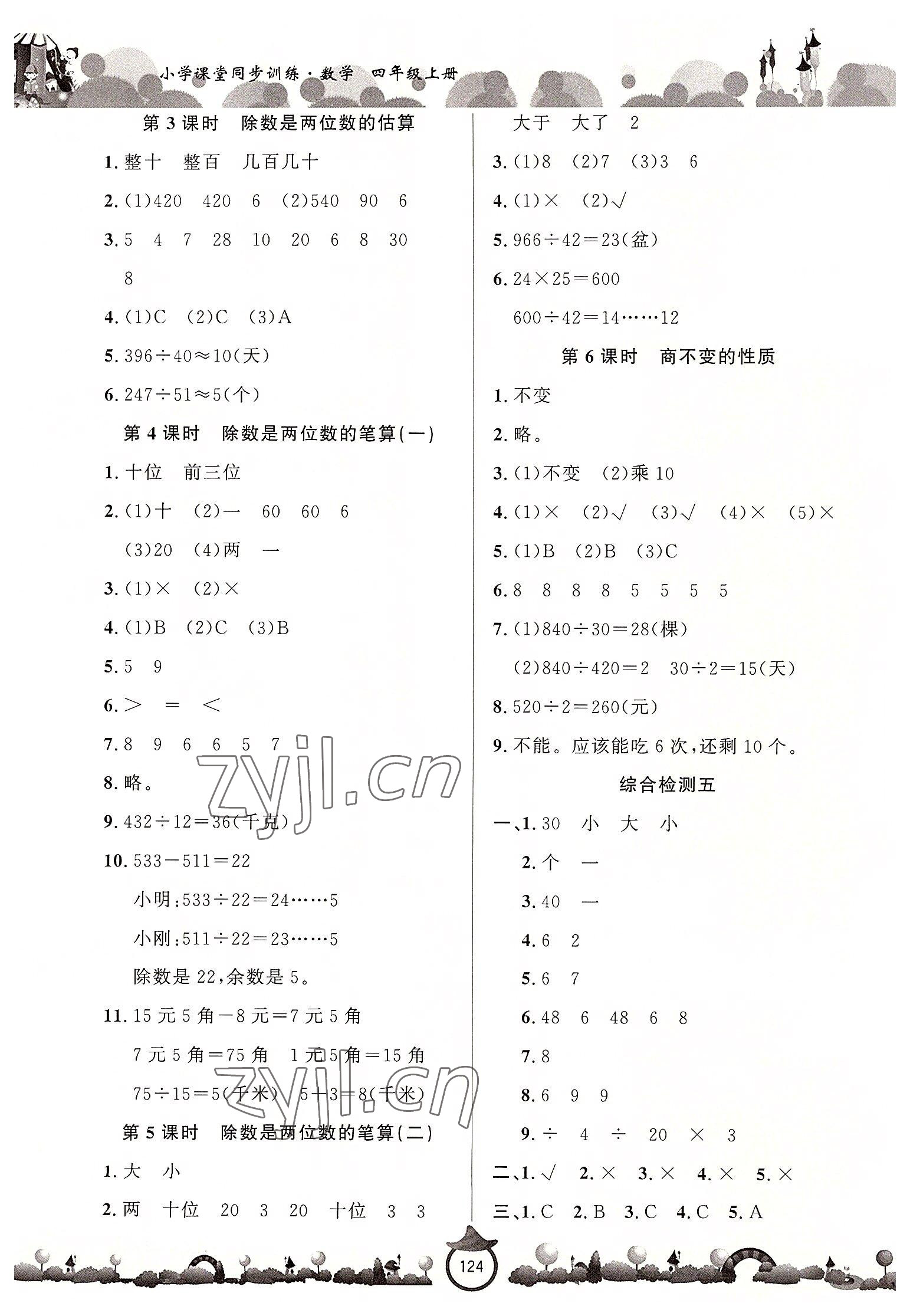 注:目前有些书本章节名称可能整理的还不是很完善,但都是按照顺序排列的,请同学们按照顺序仔细查找。练习册 2022年小学课堂同步训练山东文艺出版社四年级数学上册青岛版 答案主要是用来给同学们做完题方便对答案用的,请勿直接抄袭。