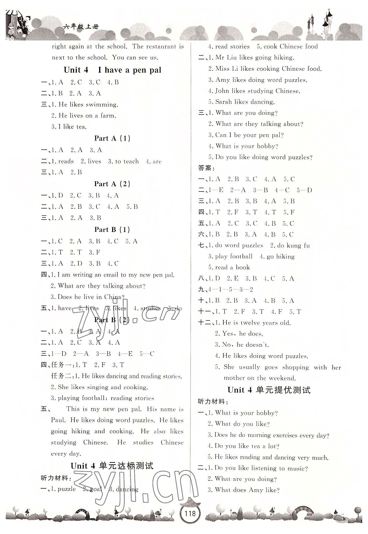 注:目前有些书本章节名称可能整理的还不是很完善,但都是按照顺序排列的,请同学们按照顺序仔细查找。练习册 2022年小学课堂同步训练山东文艺出版社六年级英语上册人教版 答案主要是用来给同学们做完题方便对答案用的,请勿直接抄袭。