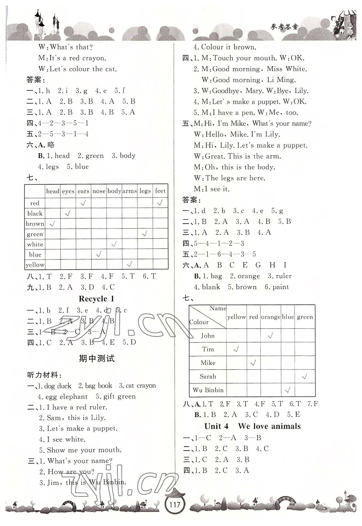 注:目前有些书本章节名称可能整理的还不是很完善,但都是按照顺序排列的,请同学们按照顺序仔细查找。练习册 2022年小学课堂同步训练山东文艺出版社三年级英语上册人教版 答案主要是用来给同学们做完题方便对答案用的,请勿直接抄袭。