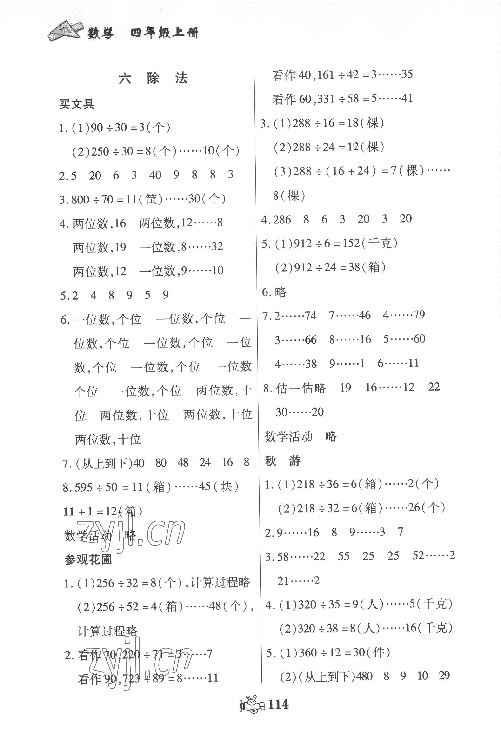 注:目前有些书本章节名称可能整理的还不是很完善,但都是按照顺序排列的,请同学们按照顺序仔细查找。练习册 2022年伴你成长北京师范大学出版社四年级数学上册北师大版河南专版 答案主要是用来给同学们做完题方便对答案用的,请勿直接抄袭。