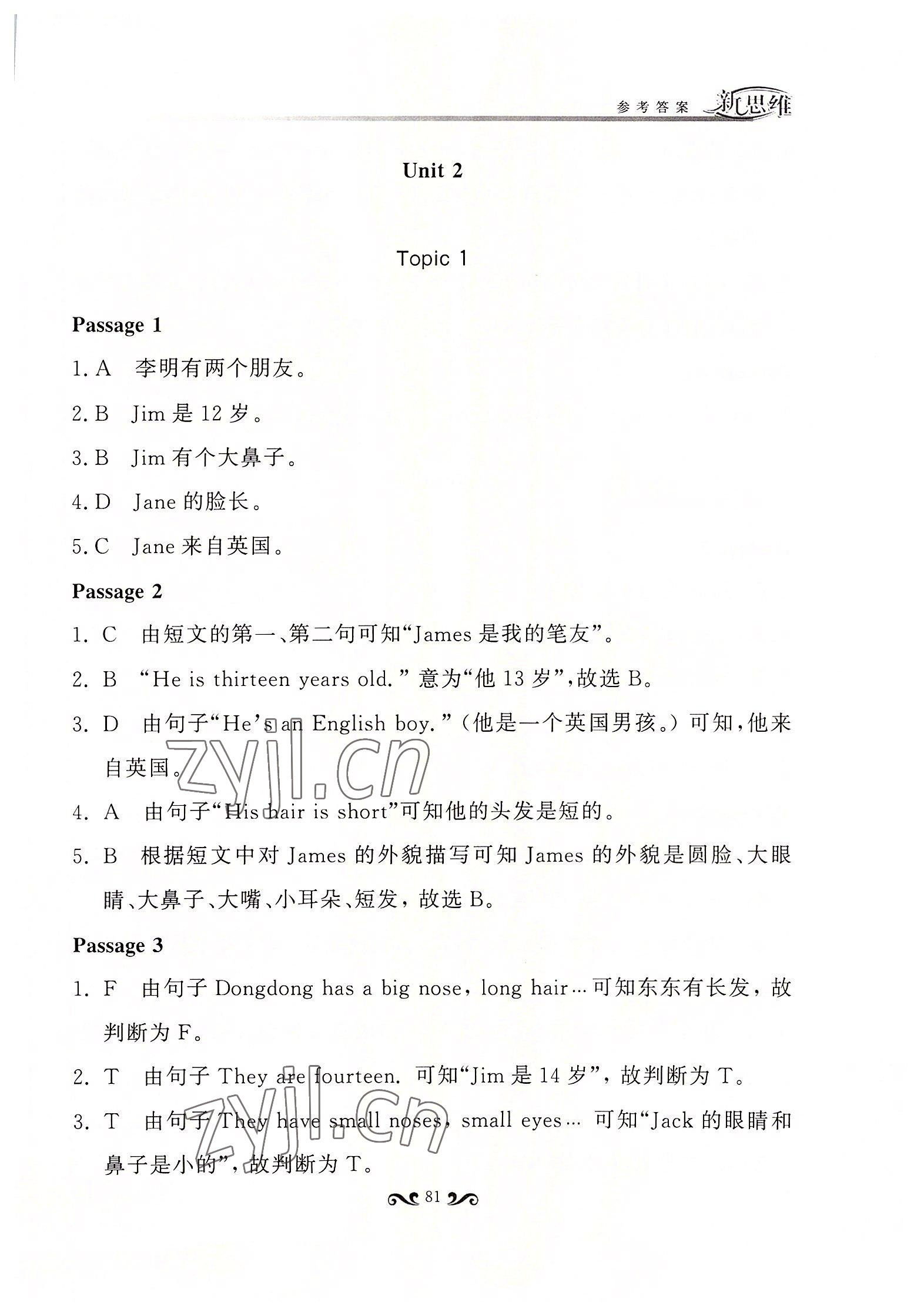 注:目前有些书本章节名称可能整理的还不是很完善,但都是按照顺序排列的,请同学们按照顺序仔细查找。练习册 2022年新思维新课程英语同步阅读七年级上册科普版 答案主要是用来给同学们做完题方便对答案用的,请勿直接抄袭。