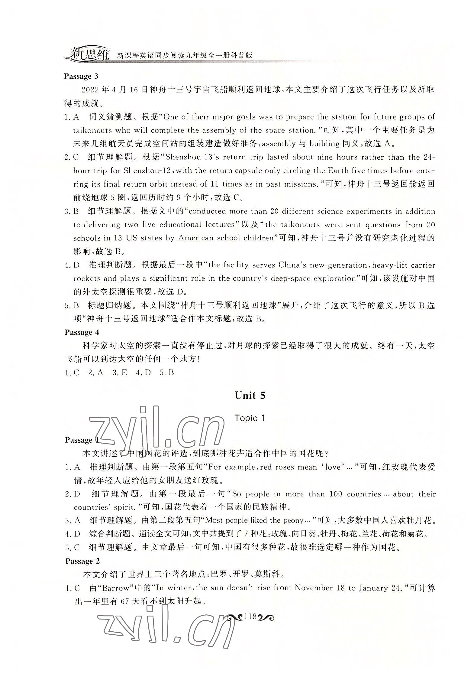 注:目前有些书本章节名称可能整理的还不是很完善,但都是按照顺序排列的,请同学们按照顺序仔细查找。练习册 2022年新思维新课程英语同步阅读九年级英语全一册科普版 答案主要是用来给同学们做完题方便对答案用的,请勿直接抄袭。