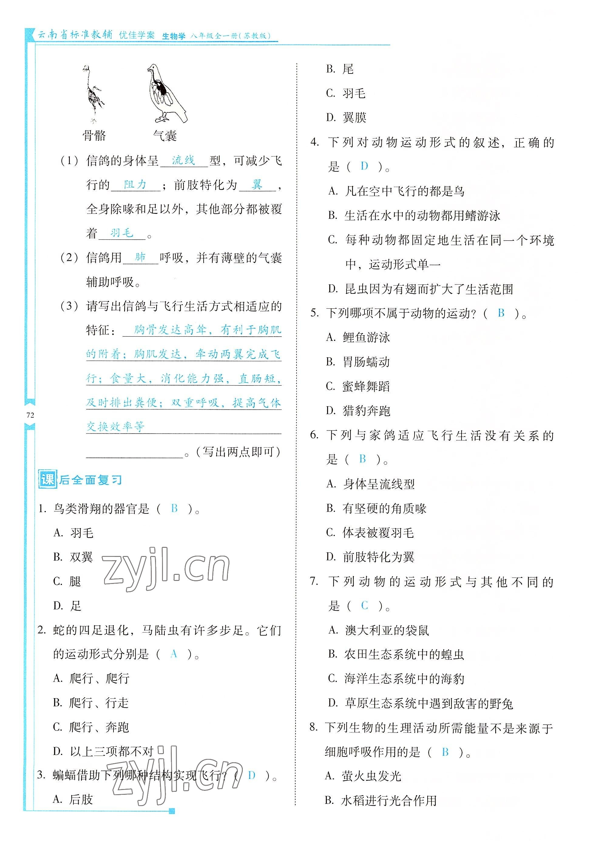 注:目前有些书本章节名称可能整理的还不是很完善,但都是按照顺序排列的,请同学们按照顺序仔细查找。练习册 2022年云南省标准教辅优佳学案八年级生物全一册苏教版 答案主要是用来给同学们做完题方便对答案用的,请勿直接抄袭。