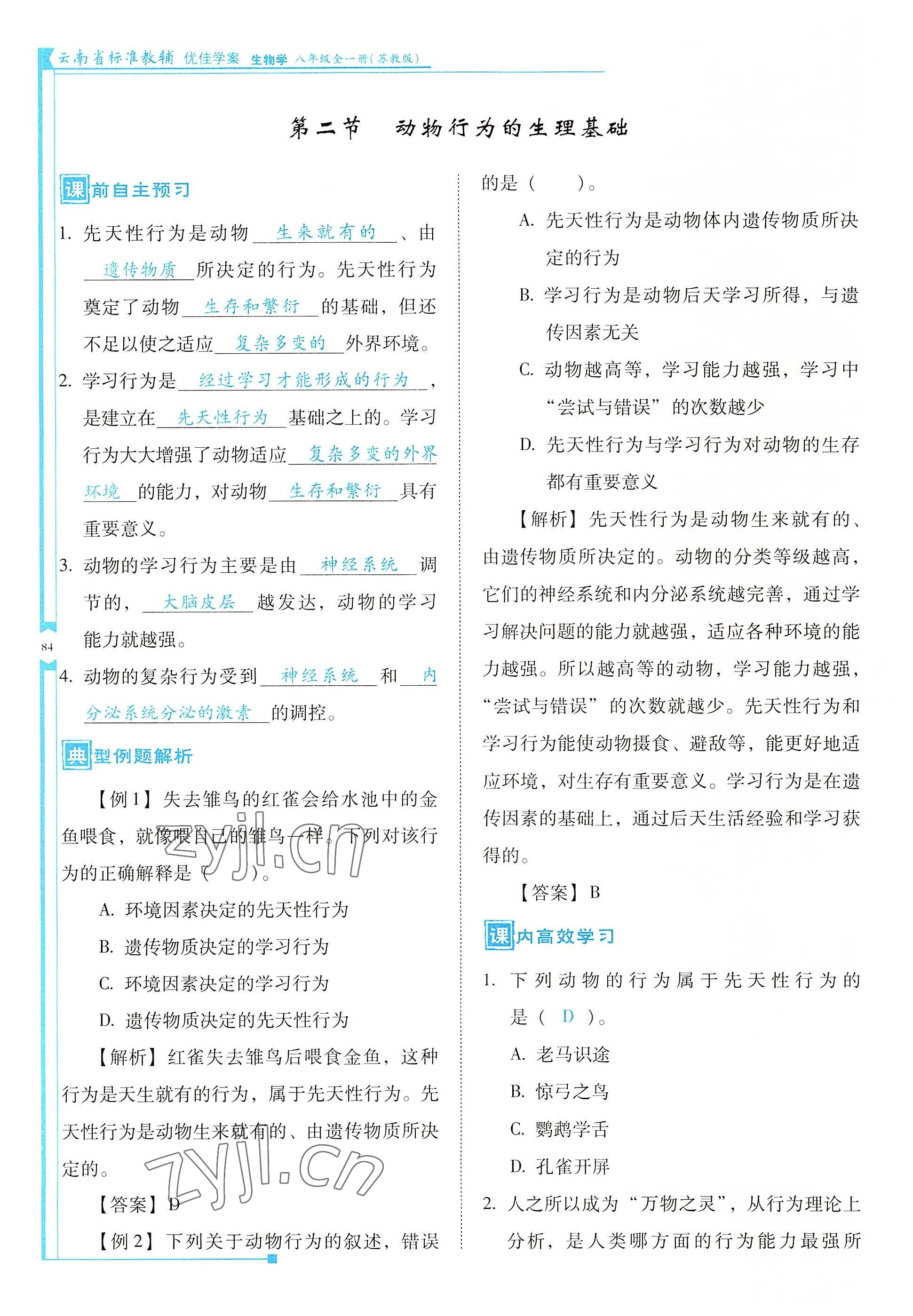 2022年云南省标准教辅优佳学案八年级生物全一册苏教版
