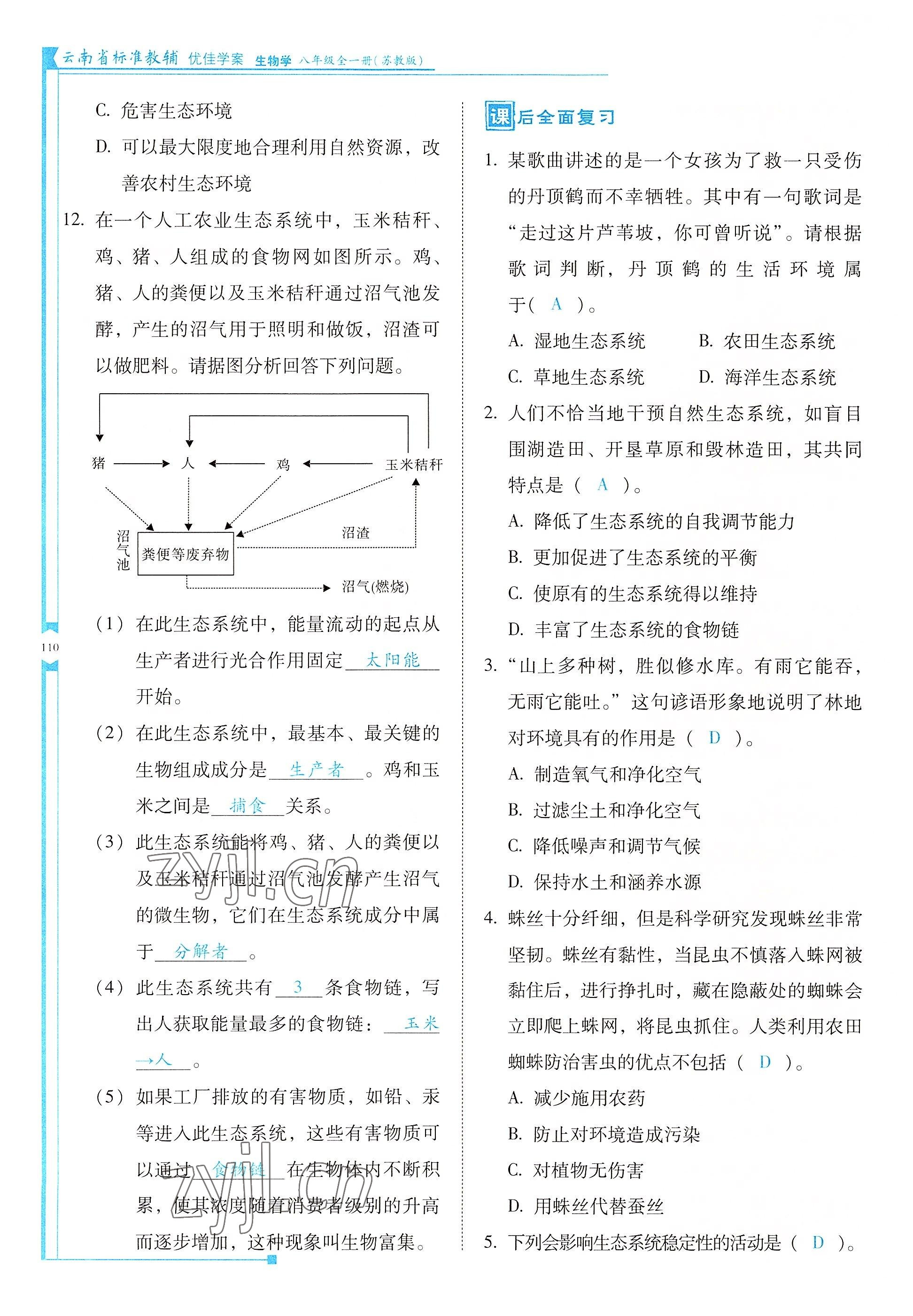 2022年云南省标准教辅优佳学案八年级生物全一册苏教版
